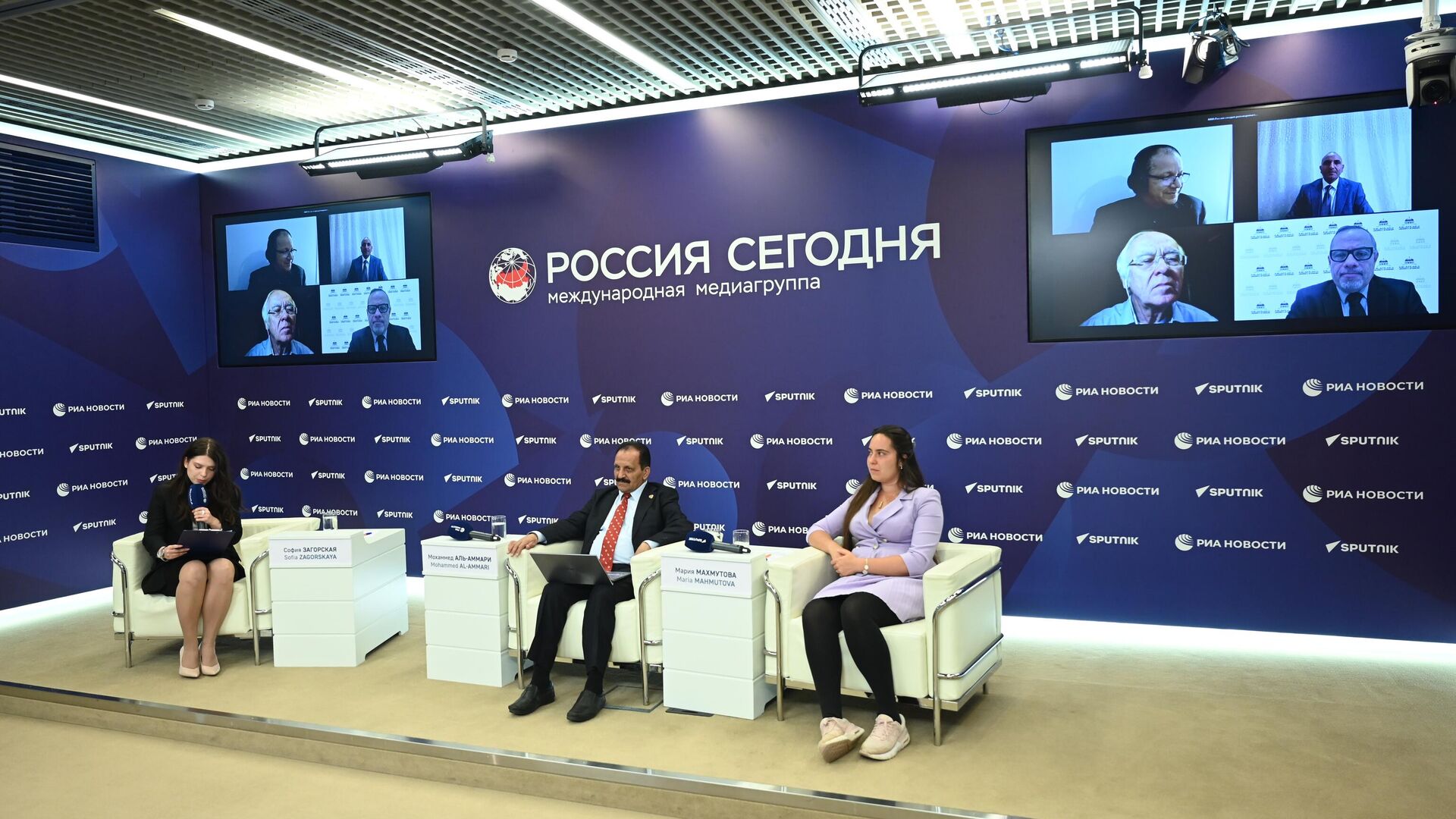 استضاف المركز الصحفي الدولي للوسائط المتعددة التابع لمجموعة "روسيا سيغودنيا" الإعلامية مائدة مستديرة حول موضوع "روسيا - دول الخليج: آفاق التعاون الواعدة". 24.04.2023, سبوتنيك عربي