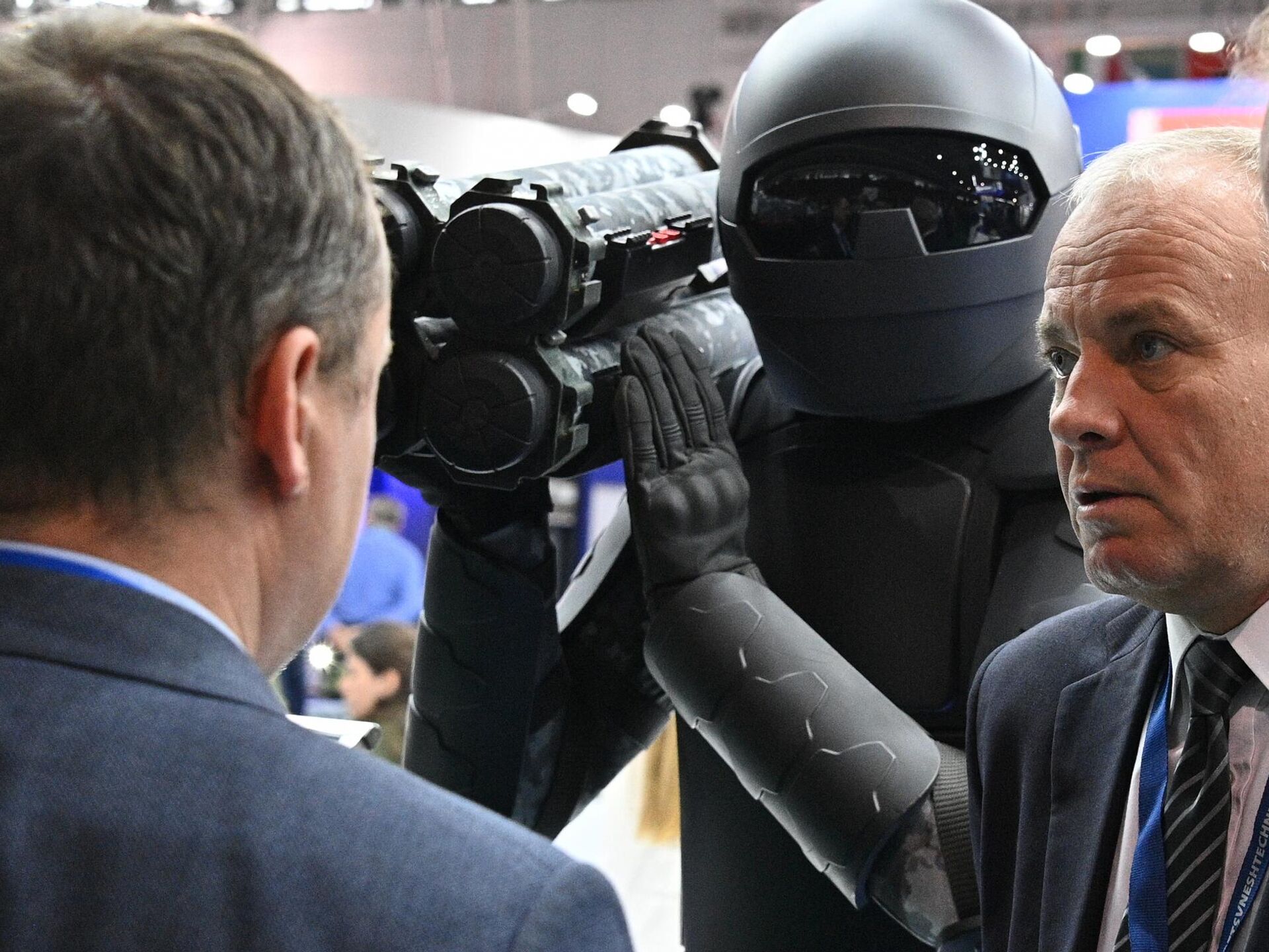 أزياء مزودة بمعدات تكتيكية ذكية في المعرض الدولي الحادي عشر للأسلحة والمعدات العسكرية "MILEX-2023" في مينسك، بيلاروسيا.