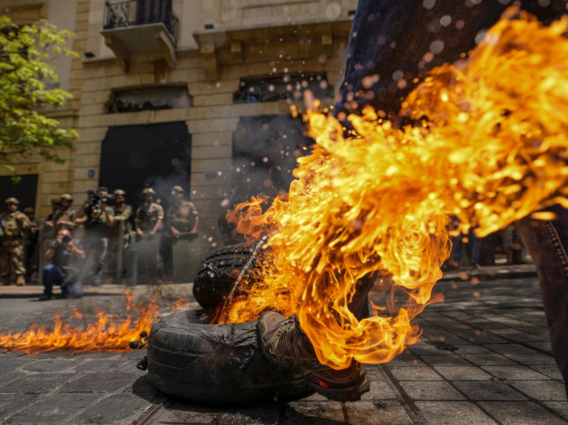 © AP Photo / Hassan Ammarاحتجاجات المودعين أمام جمعية المصارف في بيروت، لبنان