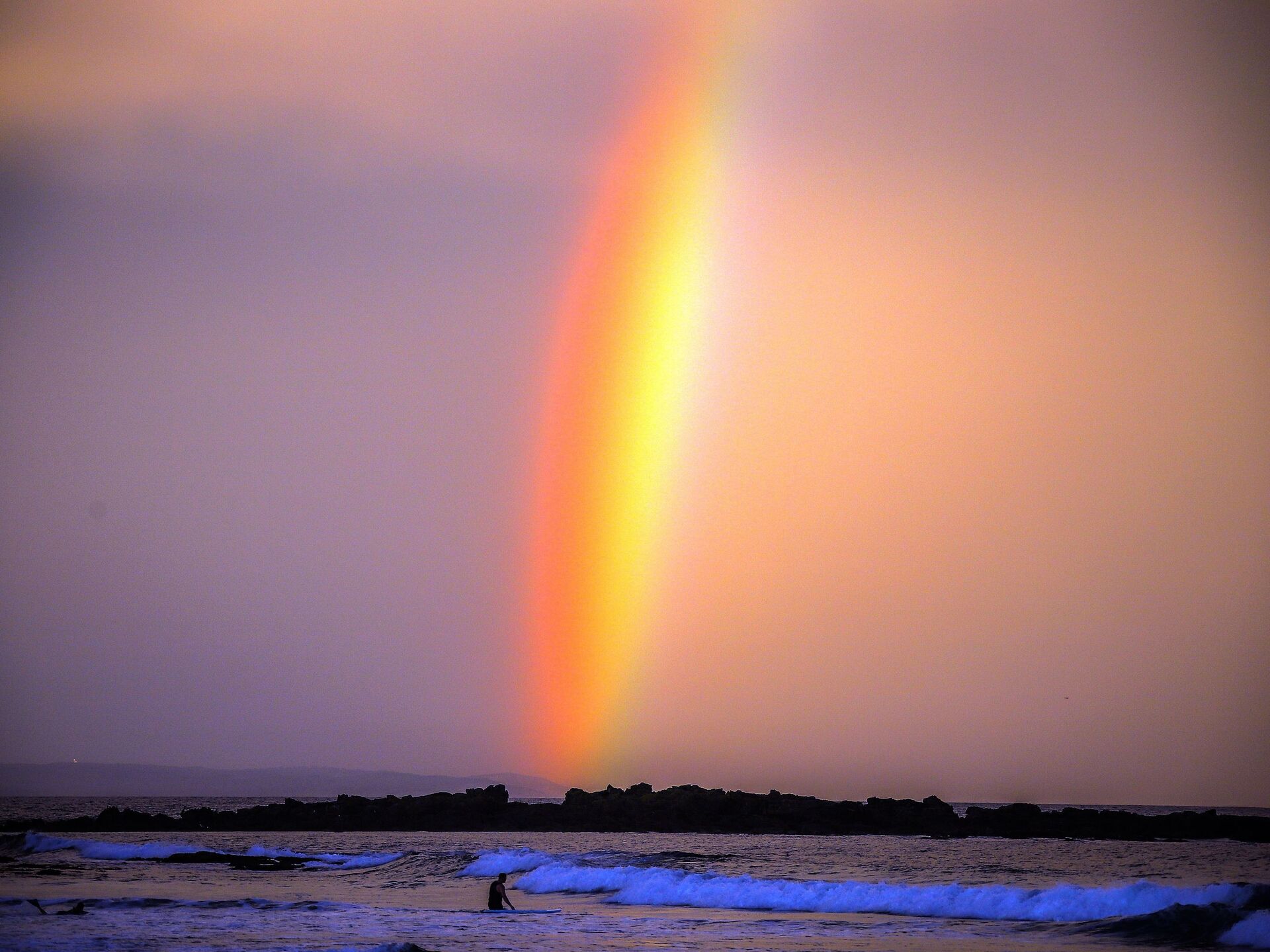 قوس قزح أثناء غروب الشمس على شاطئ مدينة مولي كوك، أستراليا  10 أبريل 2020 - سبوتنيك عربي, 1920, 08.06.2023