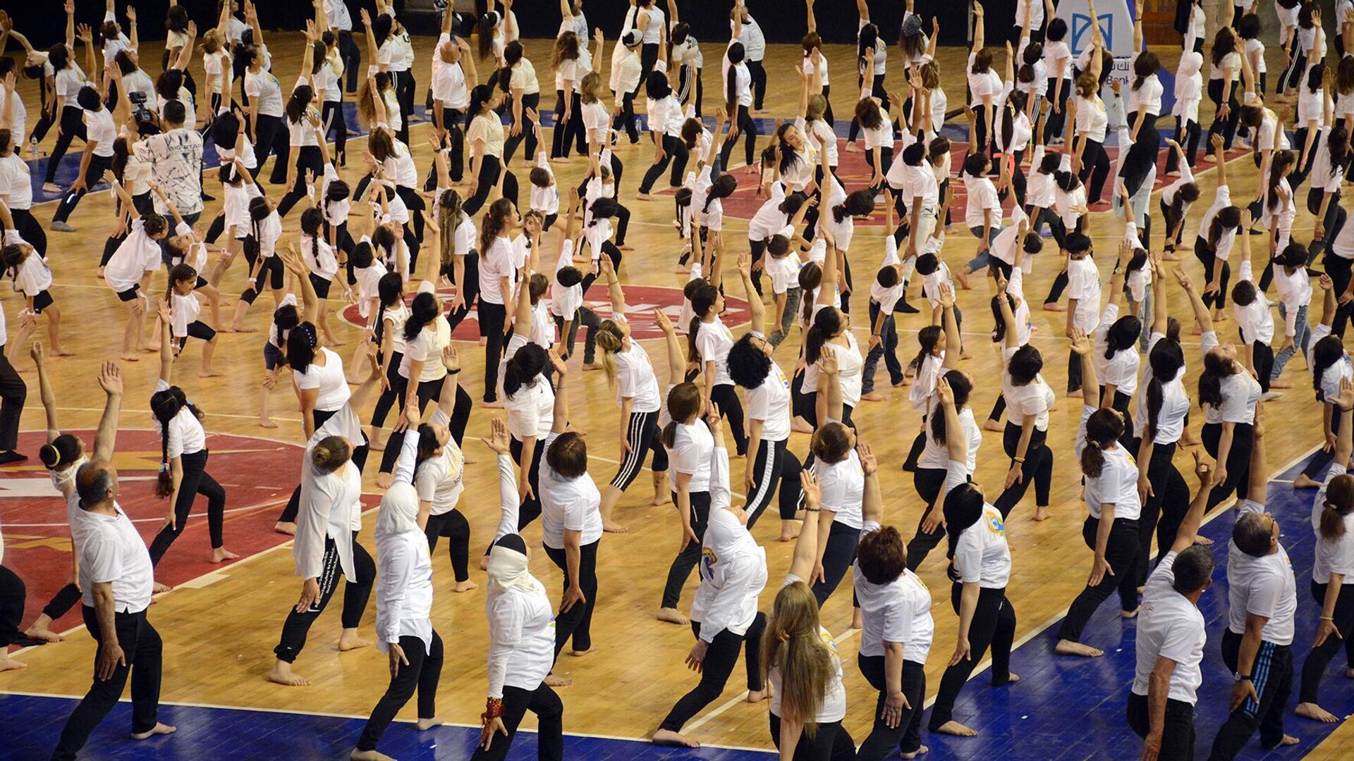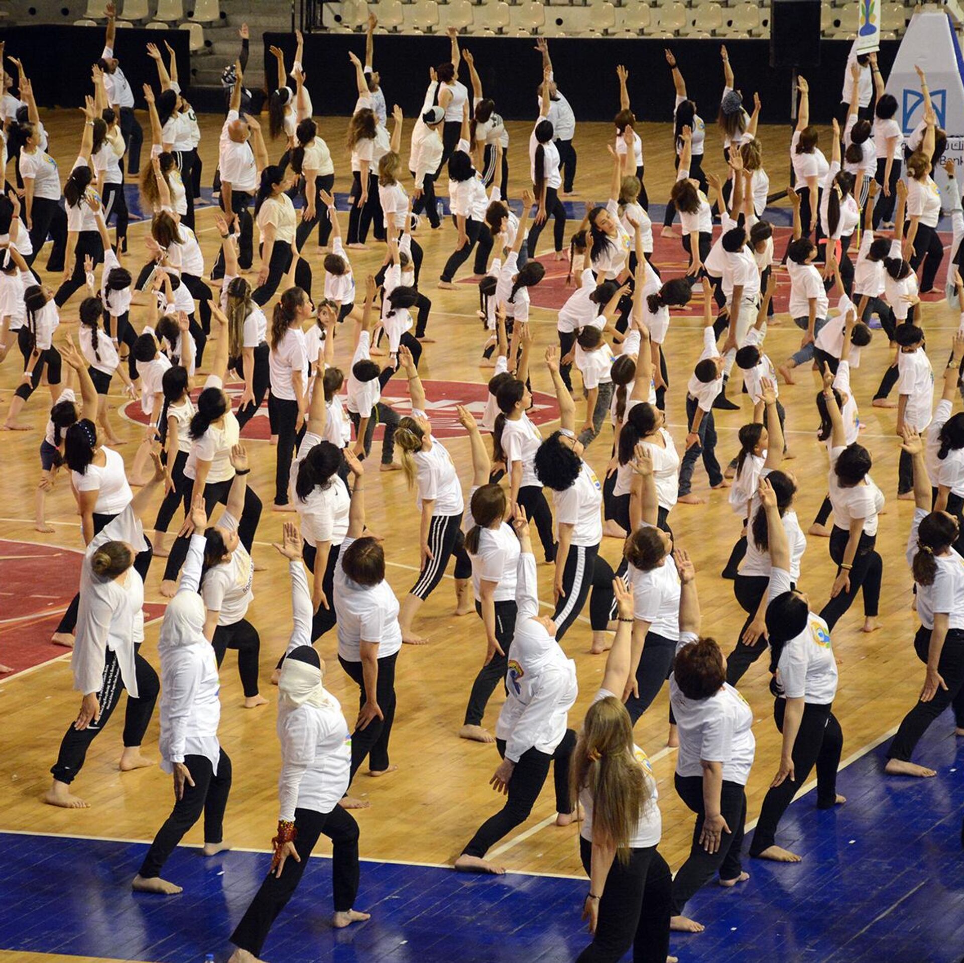 وسط حضور حاشد، قدّم أكثر من 400 مشارك، تمارين وعروض مميزة لرياضة اليوغا. كان اللافت فيها العروض والرقصات الرياضية التي أداها 100 طفل من مركز الإيواء، كانوا يعبرون فيها عن السلام الروحي الذي دخل نفوسهم ليزيح عنها غبار الزلزال ويمحو عن ذاكرتهم المتعبة شريط صور الحطام وأصوات الاستغاثة.