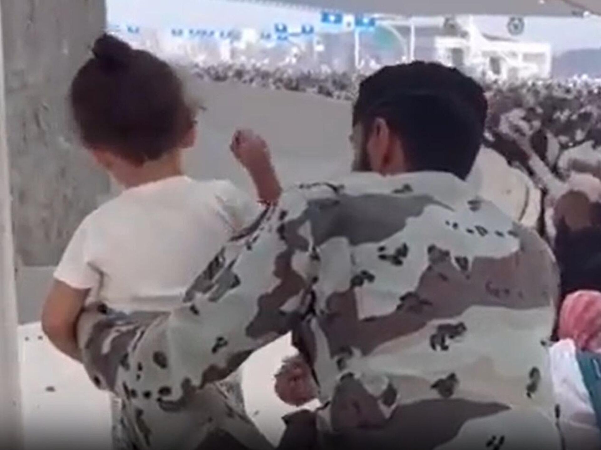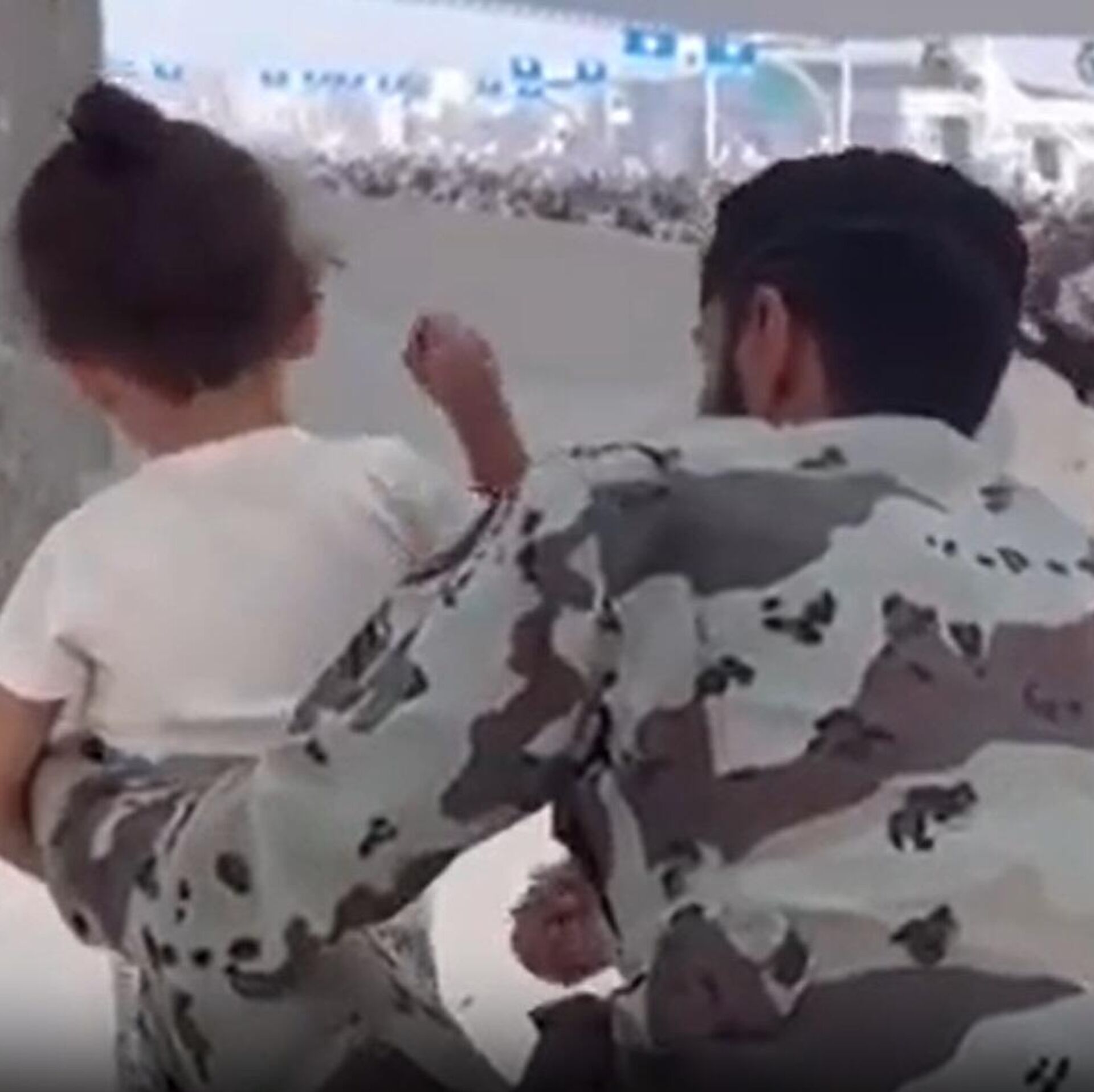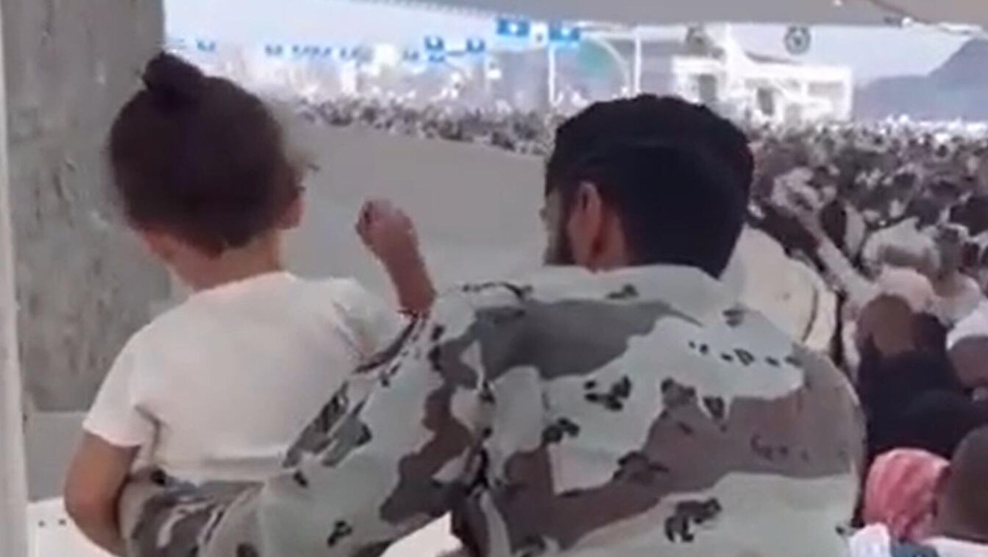 رجل أمن سعودي يساعد طفلة على رمي جمرة العقبة...فيديو