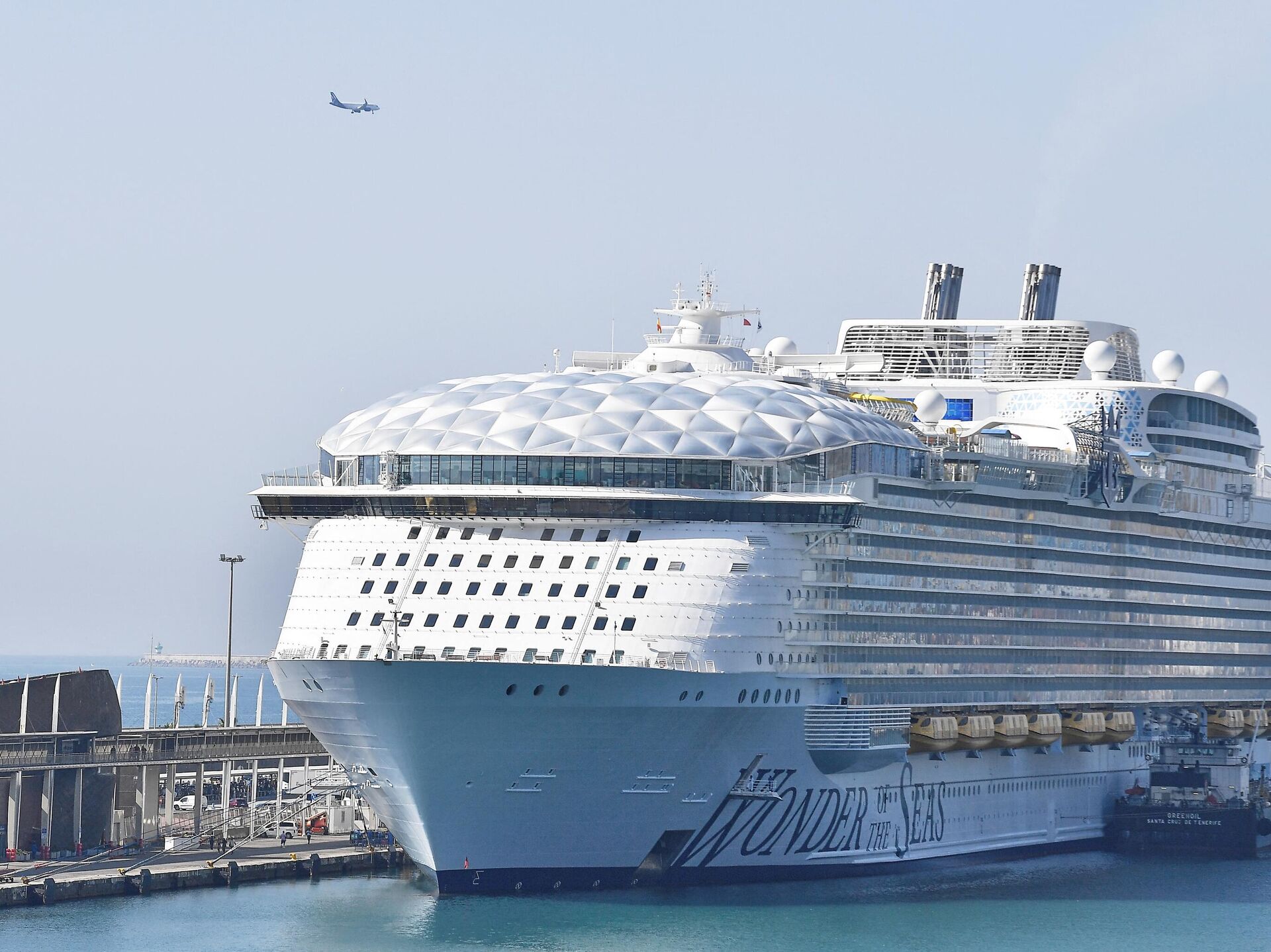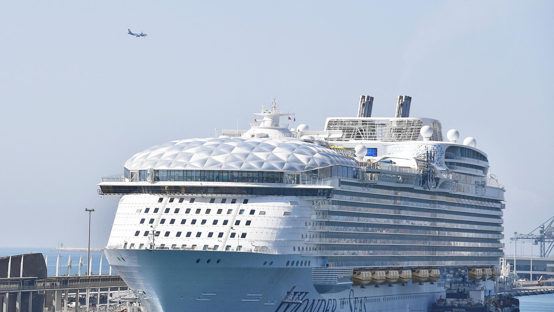 العاصفة السفينة التابعة لشركة "رويال كاريبيان"، بعد صعود الركاب على متنها، ما تسبب في هلع وذعر بينهم نتيجة تطاير حطام من الطابق العلوي لها.