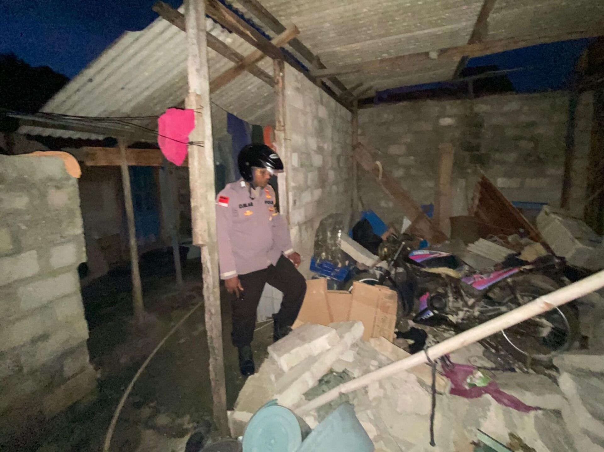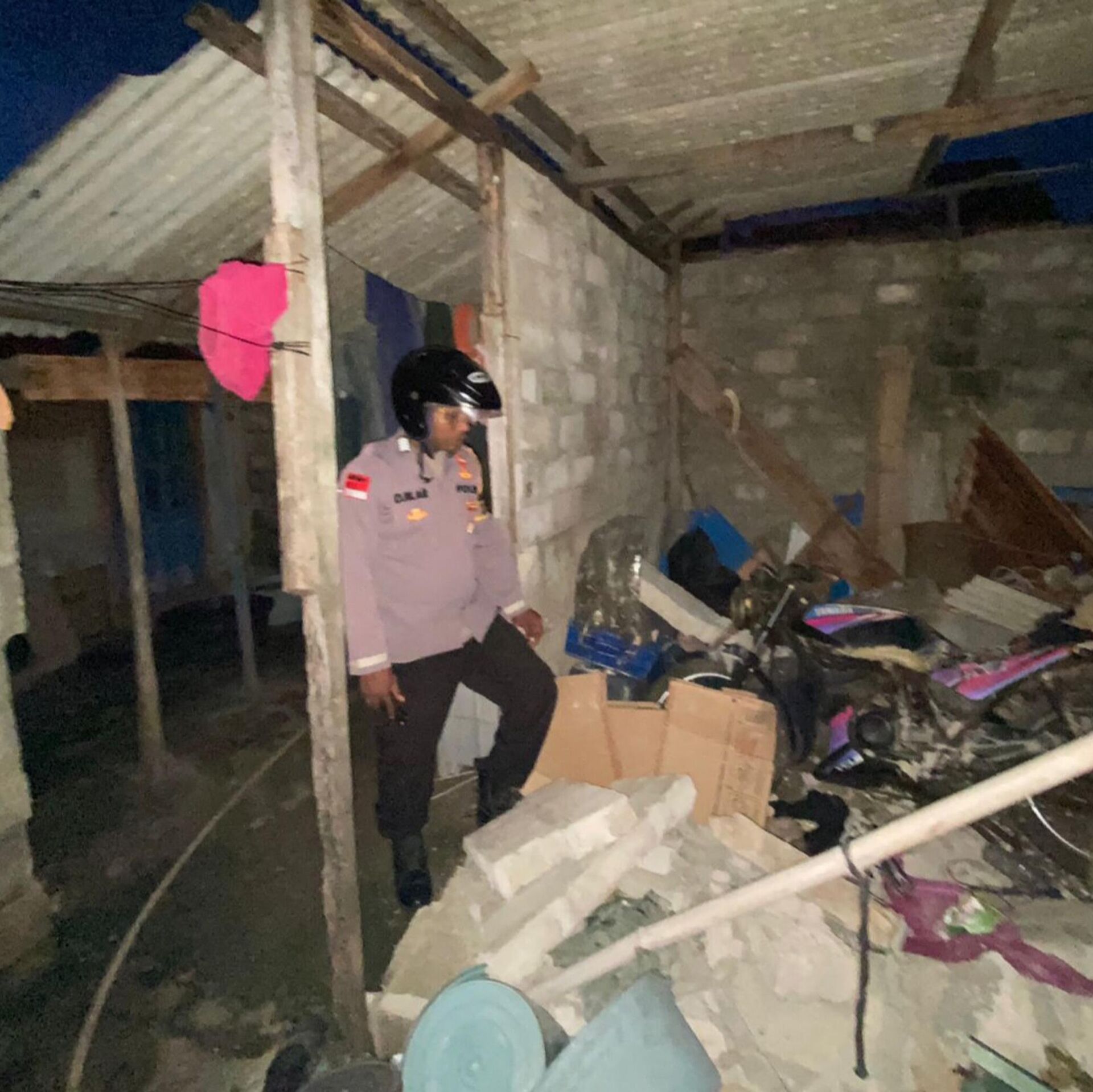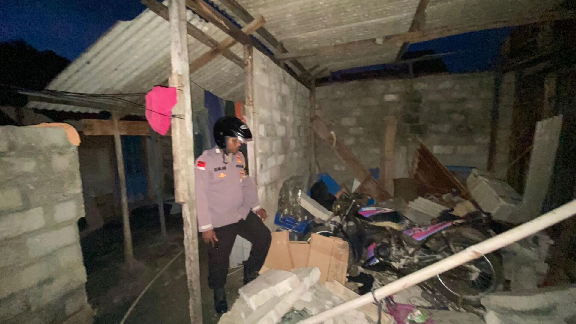 © AFP 2023 / Christ Belseranضابط شرطة يتفقد منزلًا متضررًا بعد زلزال بقوة 7.6 درجة ضرب أعماق المحيط قبالة إندونيسيا وتيمور الشرقية، في سوملاكي في ريجنسي جزر تانيمبار في 10 يناير 2023.