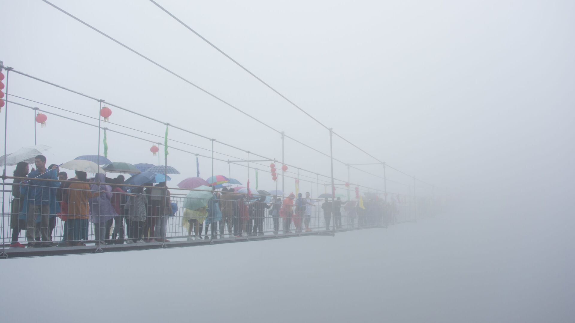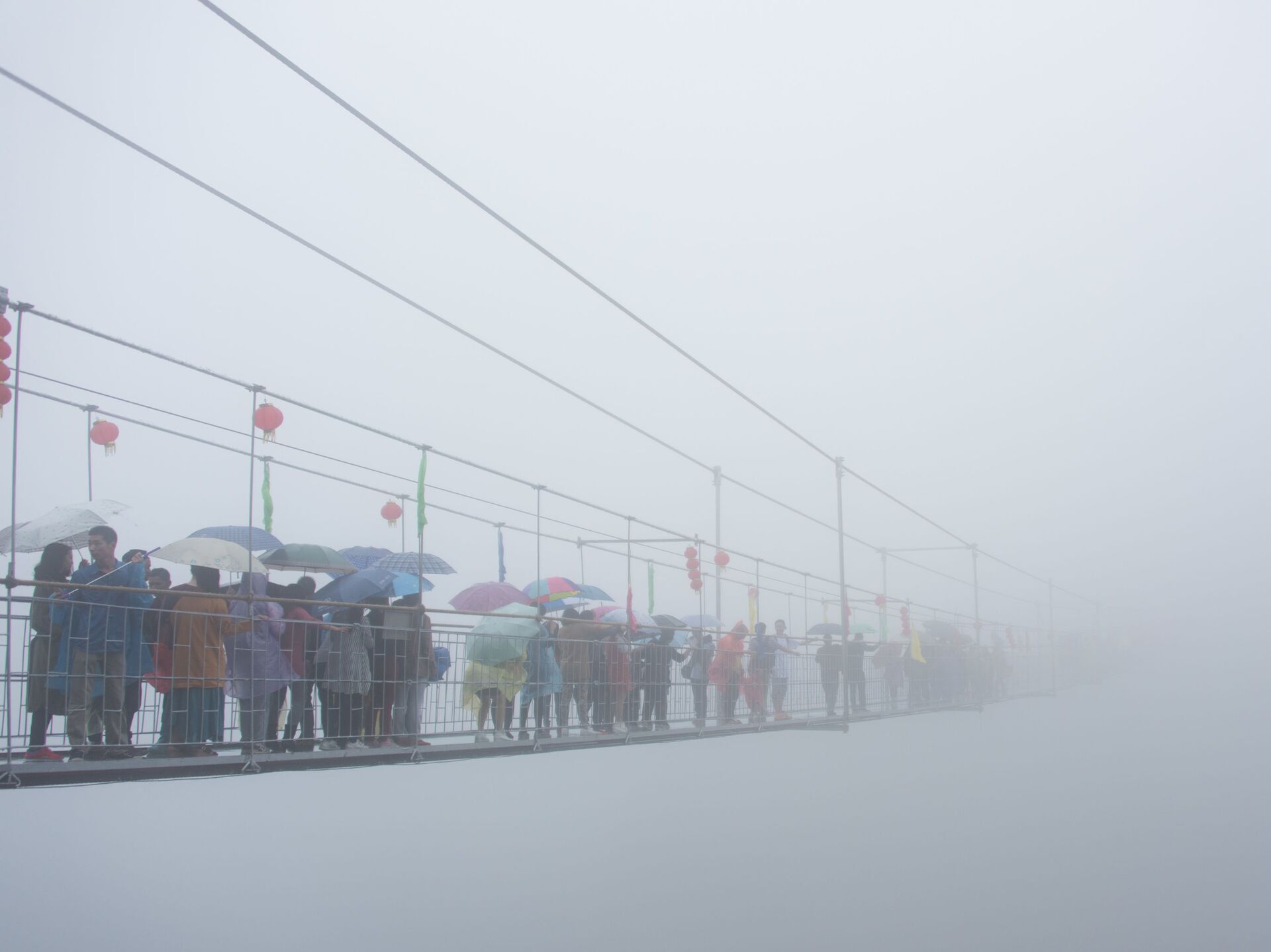 © AFP 2023 / Johannes Eiseleالسياح الصينيون على جسر معلق في جبال الصين