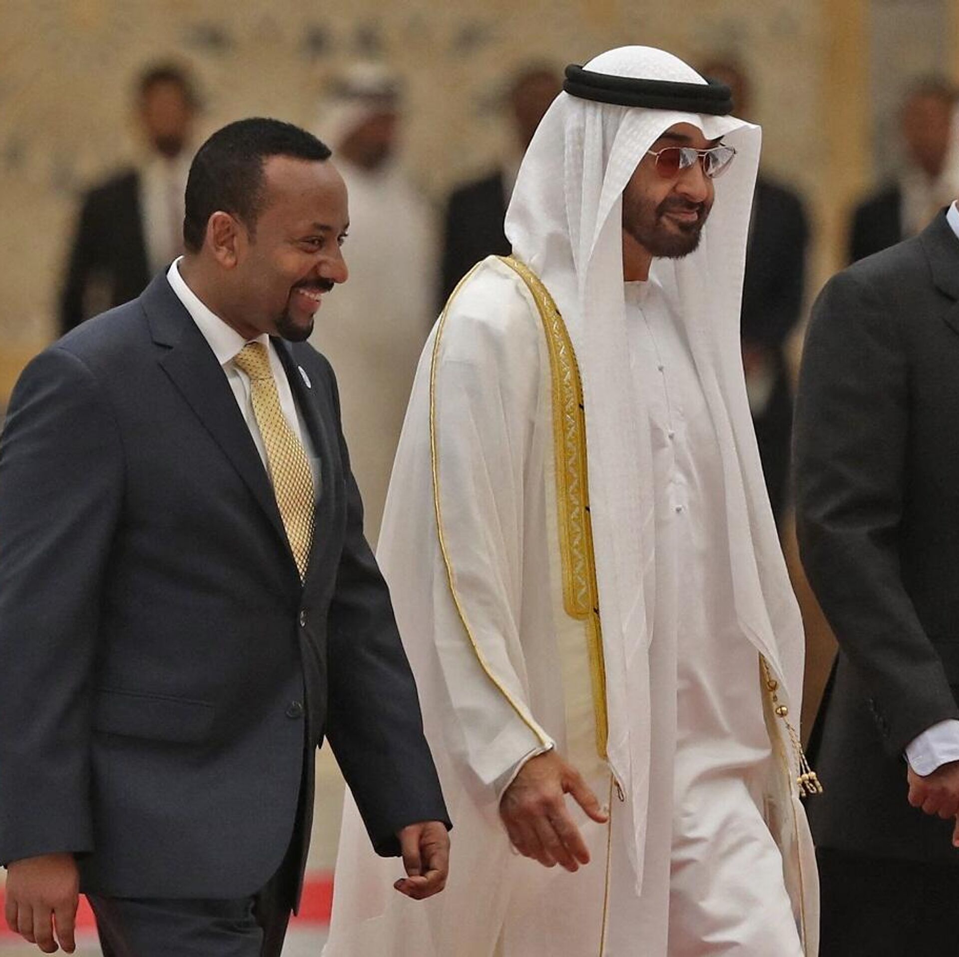 وأفادت وكالة الأنباء الإماراتية "وام"، مساء اليوم الجمعة، بأن آبي أحمد، رئيس وزراء إثيوبيا، كان في مقدمة مستقبلي الرئيس الإماراتي لدى وصوله مطار بولي أديس أبابا الدولي.