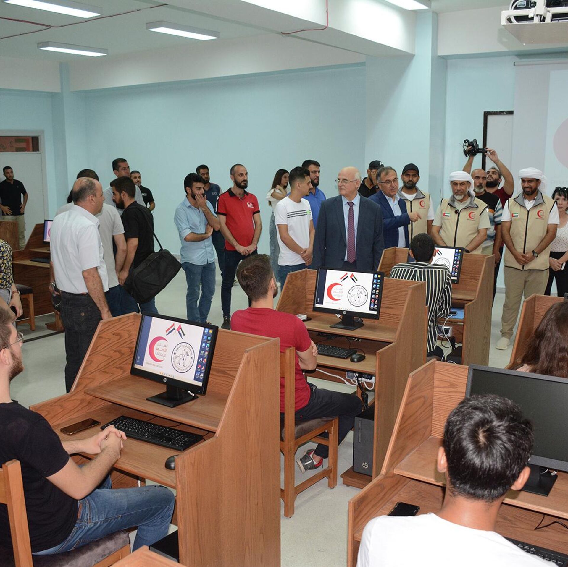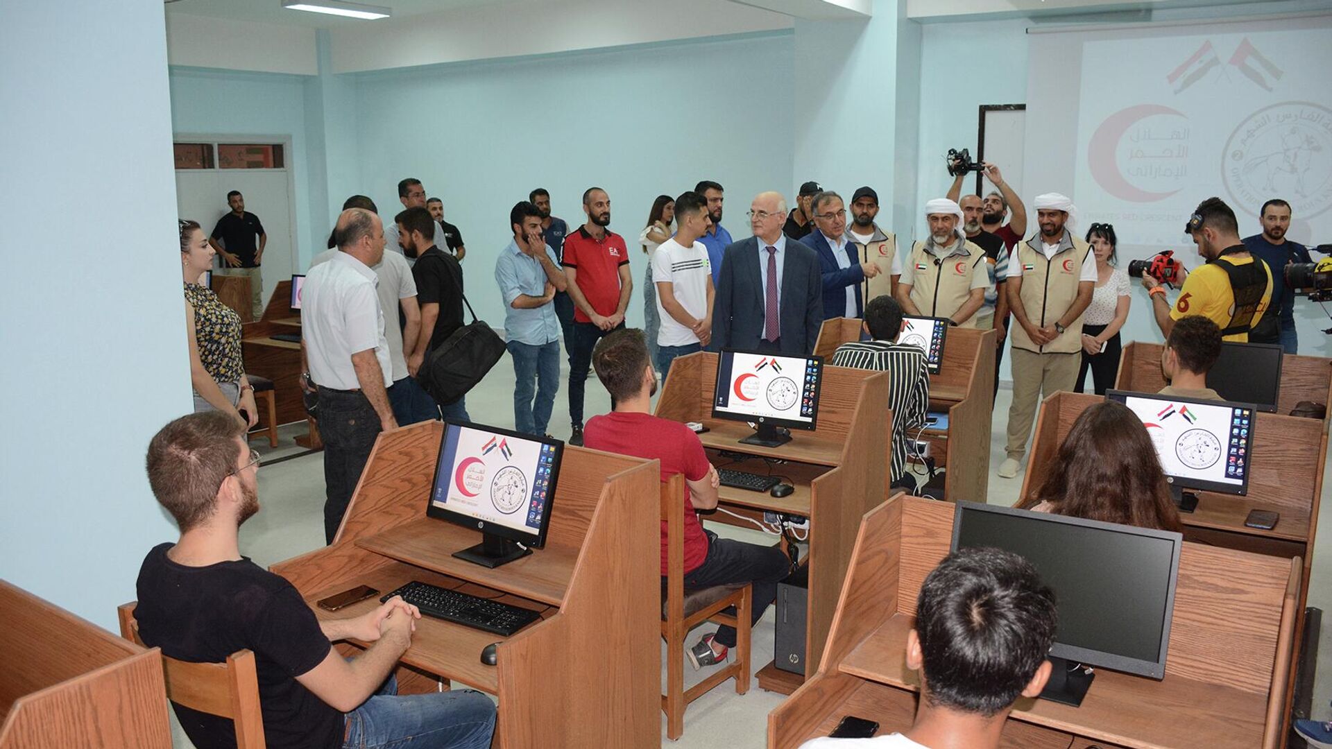 بدوره، أكّد رئيس الجامعة الدكتور بسام حسن، أن "دولة الإمارات كانت سباقة لتقديم المساعدة بعد الزلزال، وقد أطلع الهلال الأحمر الإماراتي على بعض احتياجات الجامعة، وقدّم اليوم، 60 كرسي طب أسنان، و6 أجهزة أشعة، بالإضافة ل 102 جهاز حاسب لكلية الهندسة المدنية".