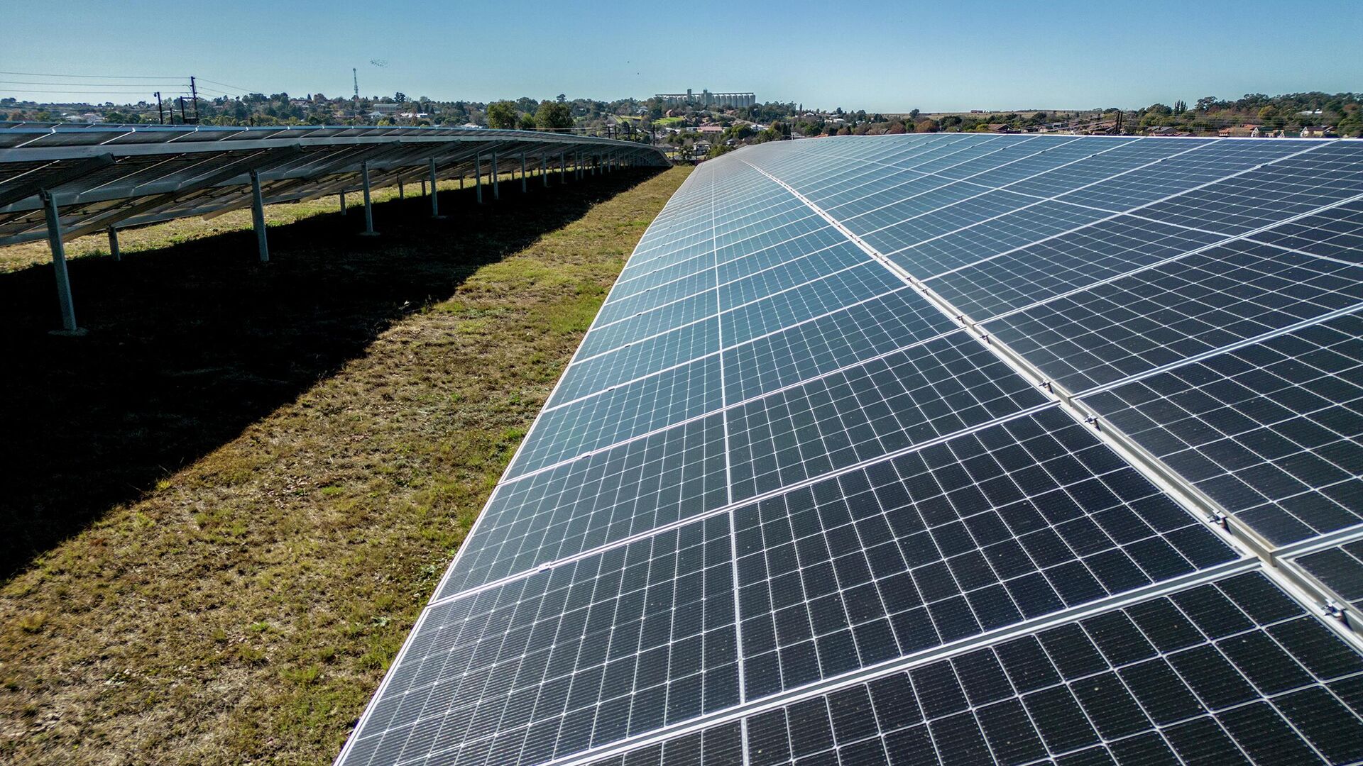 © AFP 2023 / WIKUS DE WETمحطة فرانكفورت للطاقة الشمسية الكهروضوئية في مدينة فرانكفورت، جنوب أفريقيا، 11 مايو/ أيار 2023