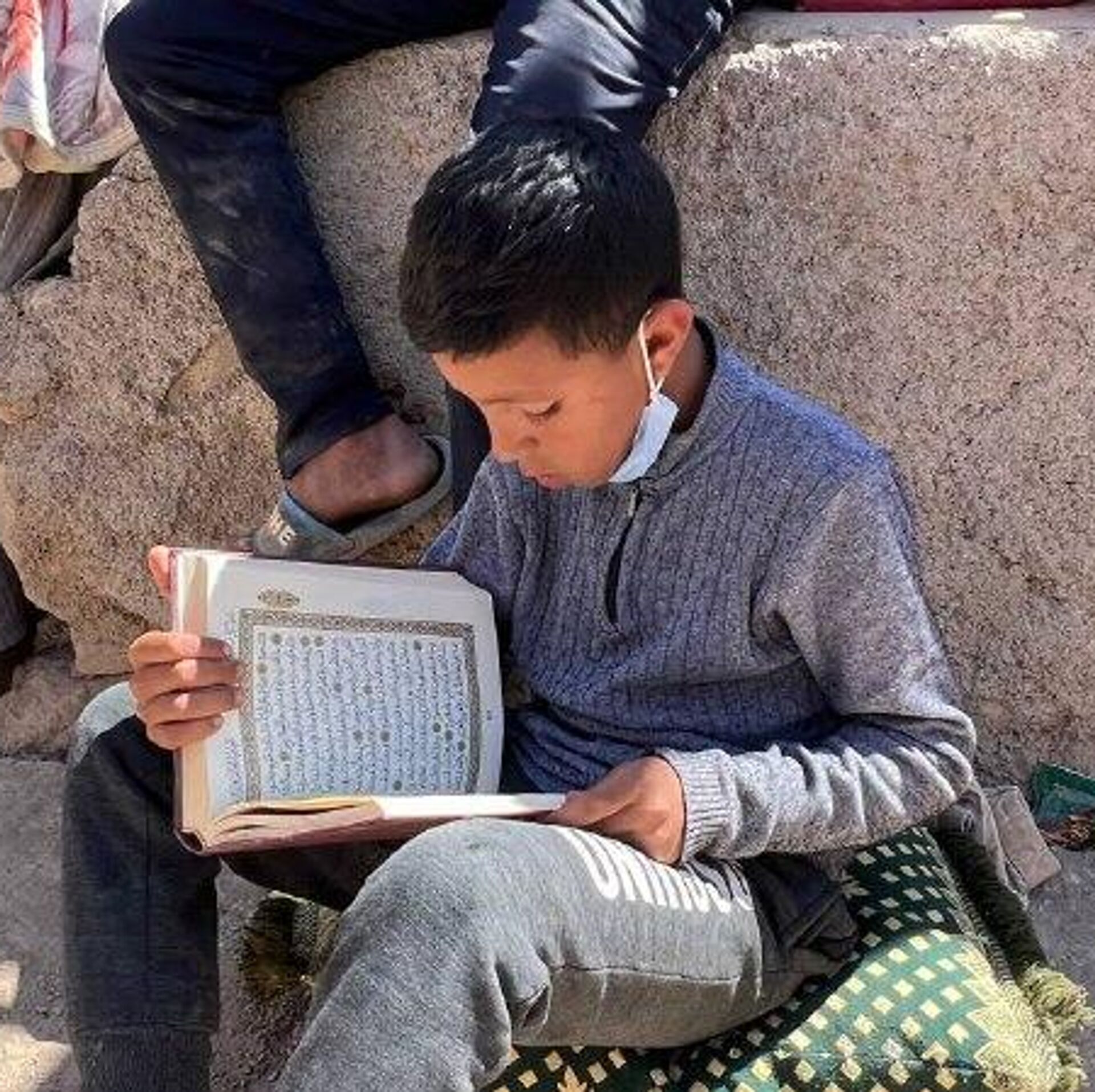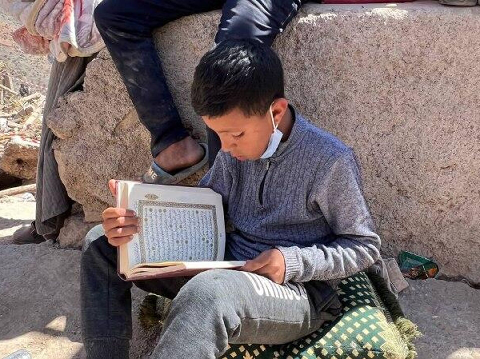 اقتربت منه وانتظرته حتى انتهى من قراءة سورة "الرحمن"، سألته عن اسمه رد بصوت خافت:" اسمي ريان وعمري 12 عاما".
