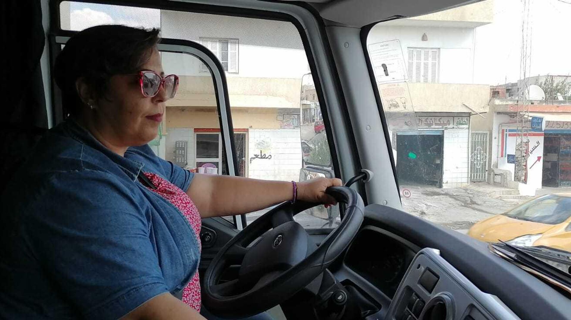أول تونسية وعربية تعلم الرجال قيادة الشاحنات الثقيلة