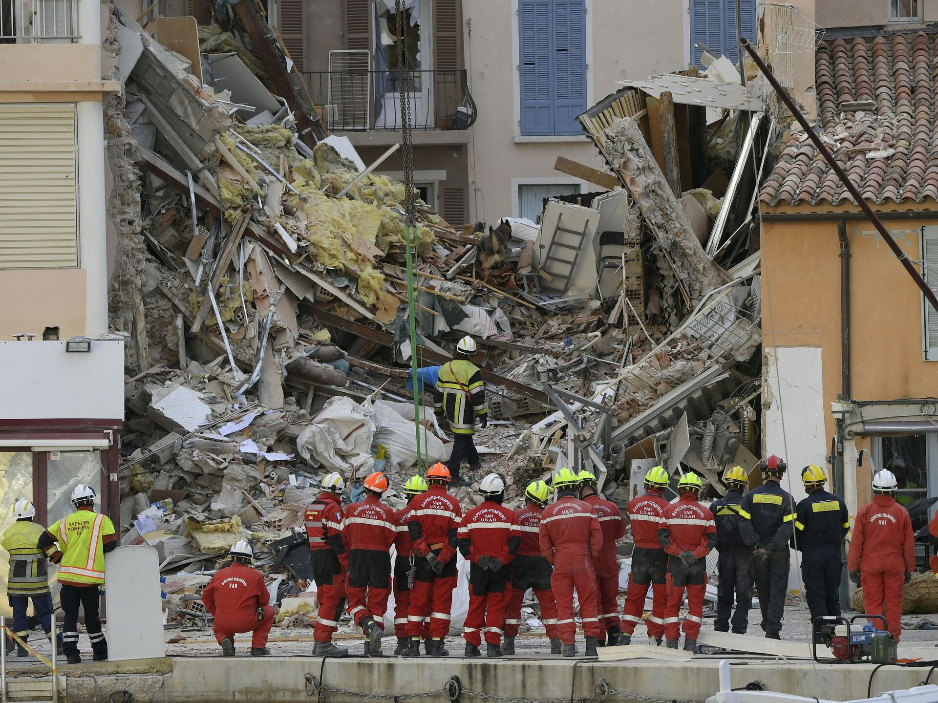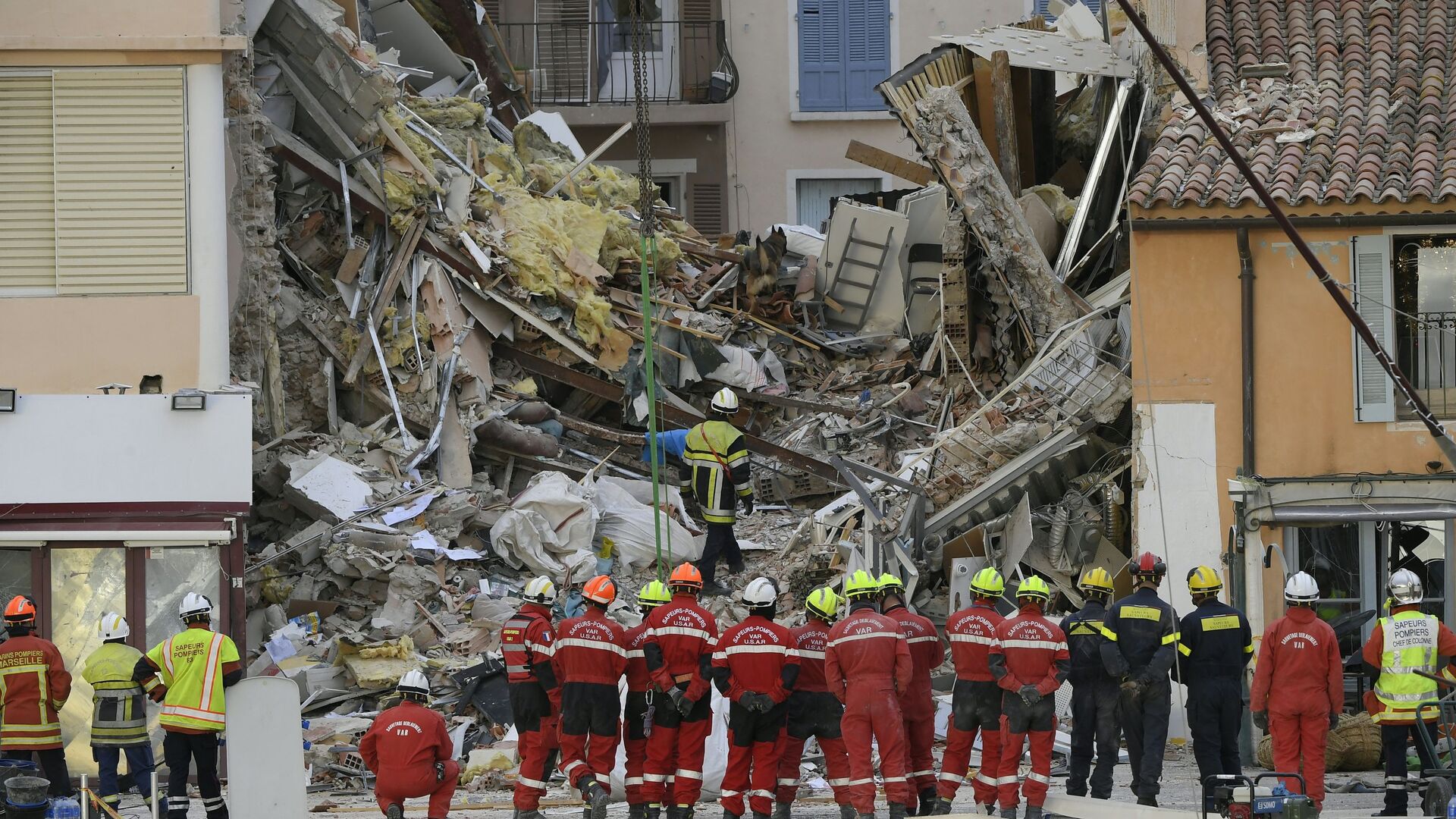 © AFP 2023 / Nicolas Tucatرجال إطفاء يبحثون في الأنقاض عن السكان المفقودين بعد انهيار مبنى في ساناري سور مير، فرنسا 7 ديسمبر 2021.
