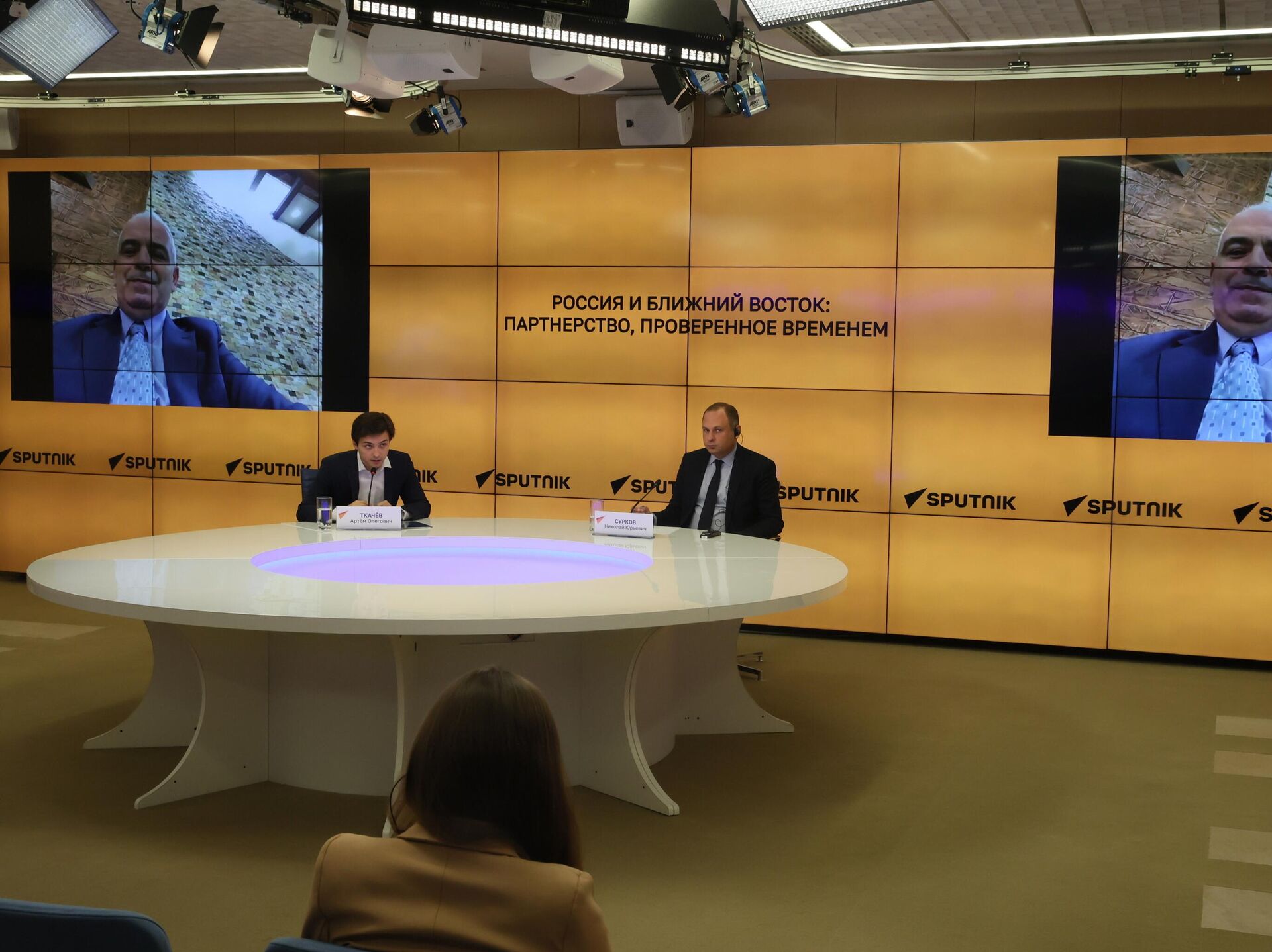 استضاف المركز الصحفي الدولي المتعدد الوسائط، التابع لمجموعة "روسيا سيغودنيا" الإعلامية، طاولة مستديرة بمشاركة ممثلين عن العواصم، موسكو، القاهرة، دمشق، بيروت، حول موضوع "روسيا والشرق الأوسط: شراكة اجتازت اختبار الزمن".