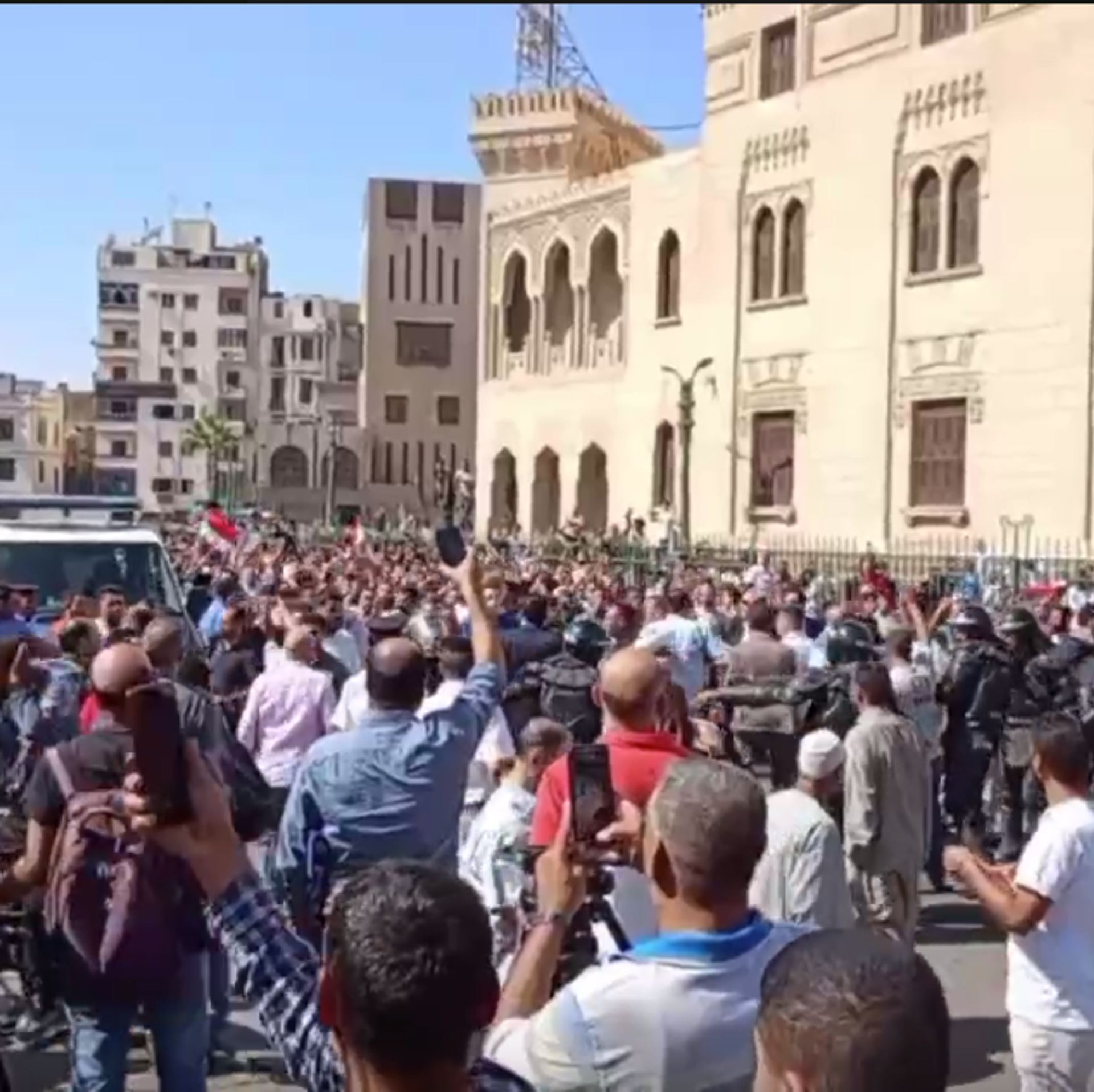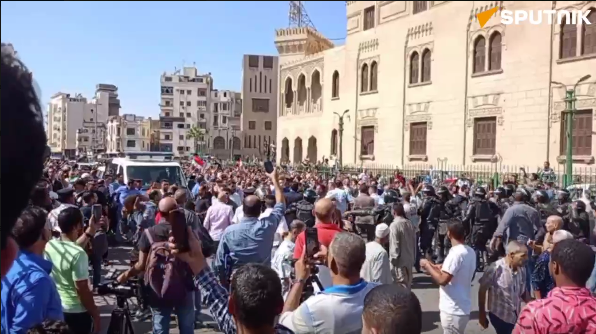 لحظة تحول تظاهرة أمام الأزهر المصري إلى مسيرة حاشدة دعما لغزة... فيديو