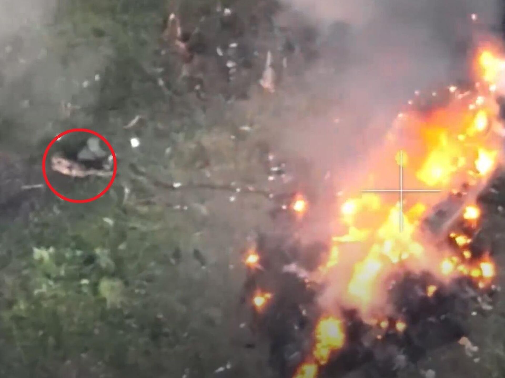 © Photo / The Ministry of Defence of the Russian Federationجندي أوكراني يهرب من مدرعته المحترقة بعد استهدافها بقذيفة روسية