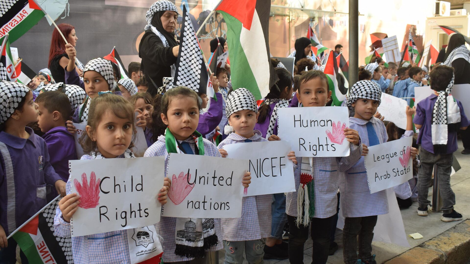 أطفال مخيمات بيروت يتضامنون مع أطفال غزة أمام مقر الصليب الأحمر الدولي... فيديو وصور