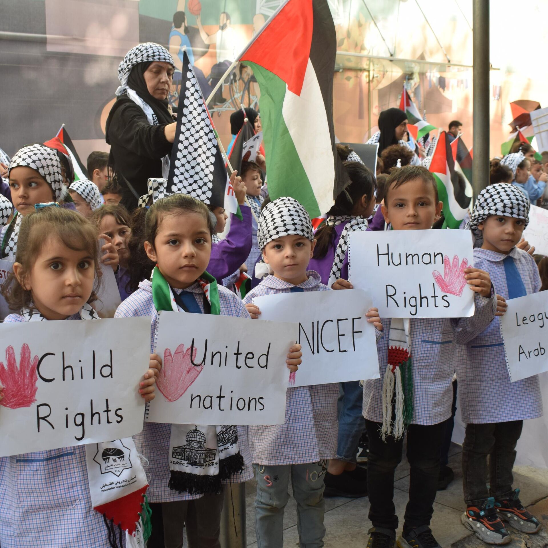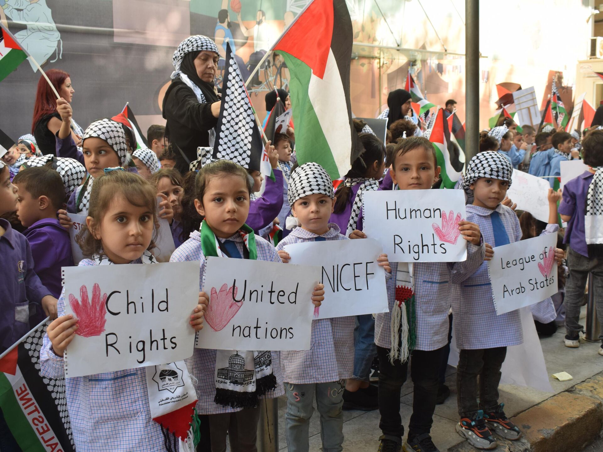 نفذ عشرات الأطفال من أبناء اللاجئين الفلسطينيين في لبنان، اليوم الثلاثاء، اعتصامًا أمام مقر اللجنة الدولية للصليب الأحمر الدولي في بيروت، تضامنًا مع أطفال قطاع غزة، وتنديدًا بالاعتداءات الإسرائيلية وقتل الأطفال.