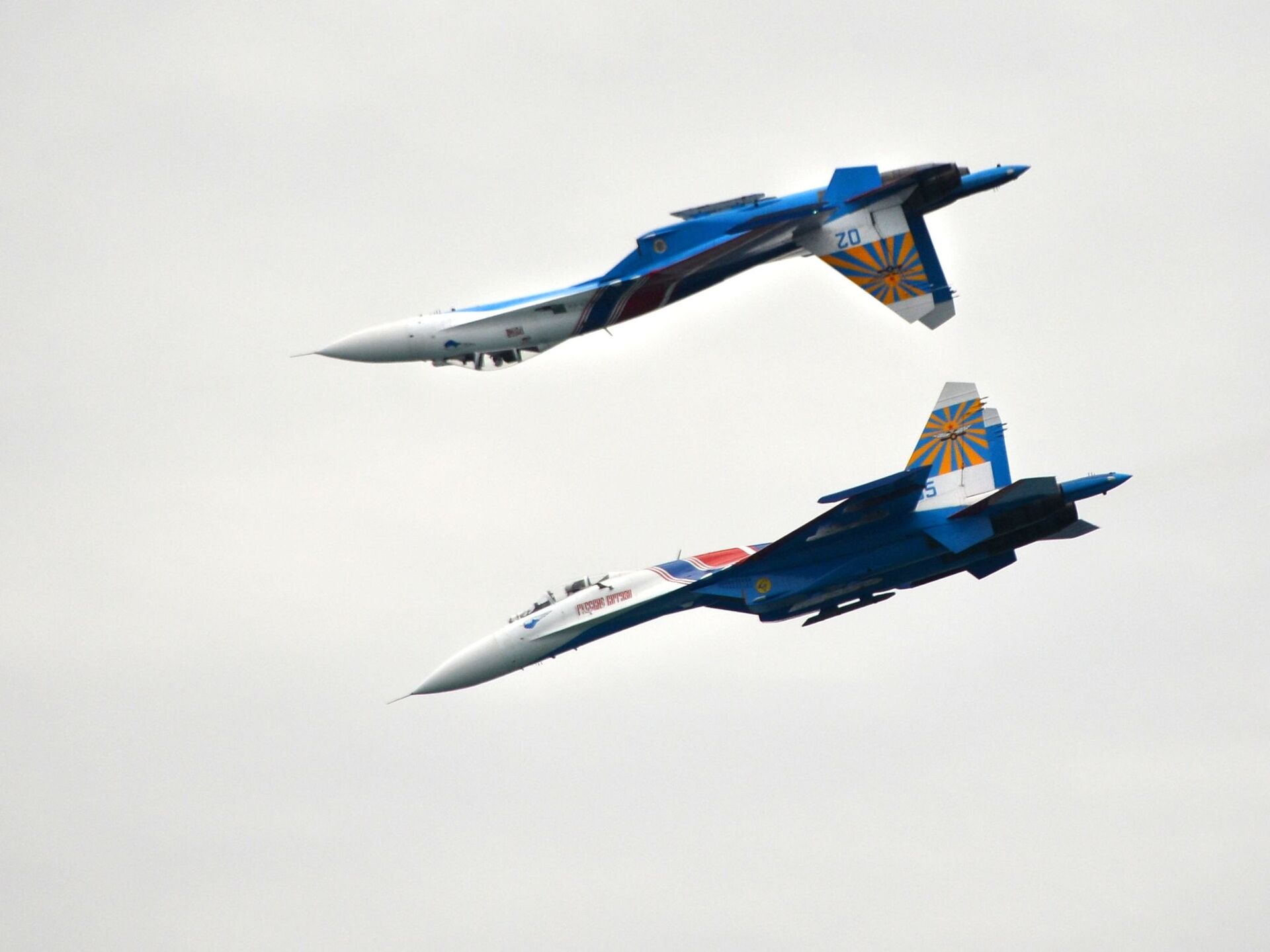 وفي وقت سابق، أعلن وزير الصناعة والتجارة الروسي، دينيس مانتوروف، أن فريق الفرسان الروس للاستعراضات الجوية سيشارك في العروض الجوية في معرض دبي للطيران، مضيفًا أن الفريق وصل إلى الإمارات العربية المتحدة.