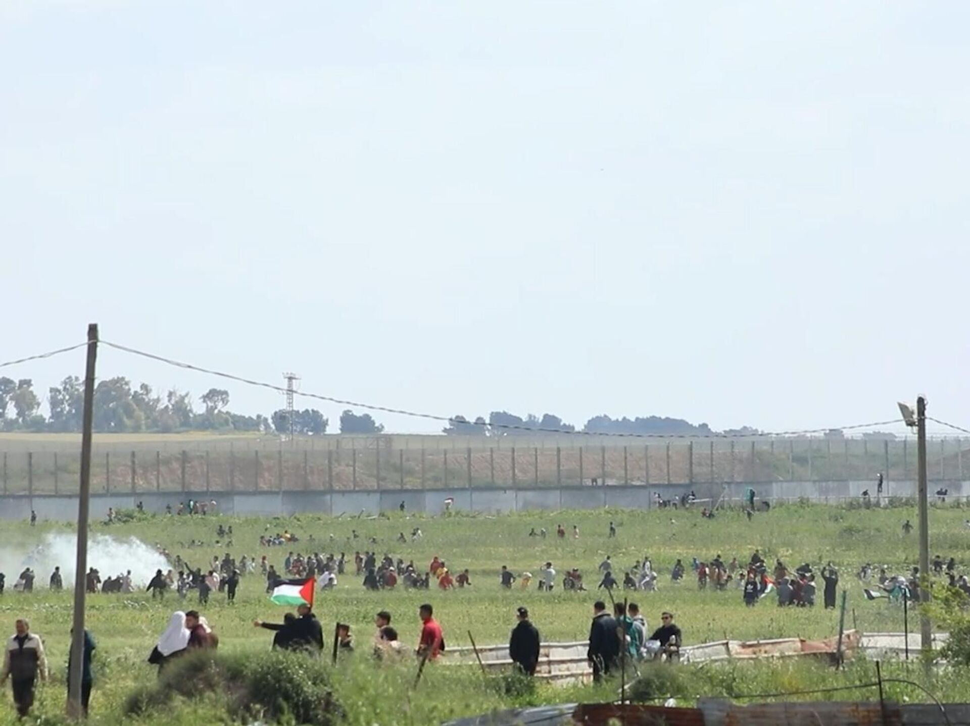 © Sputnik . Ajwad Jradatفلسطينيون يحيون ذكرى يوم الأرض بمهرجان جماهيري على حدود غزة