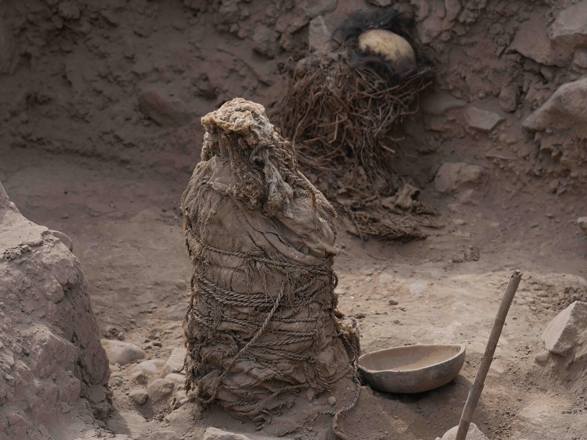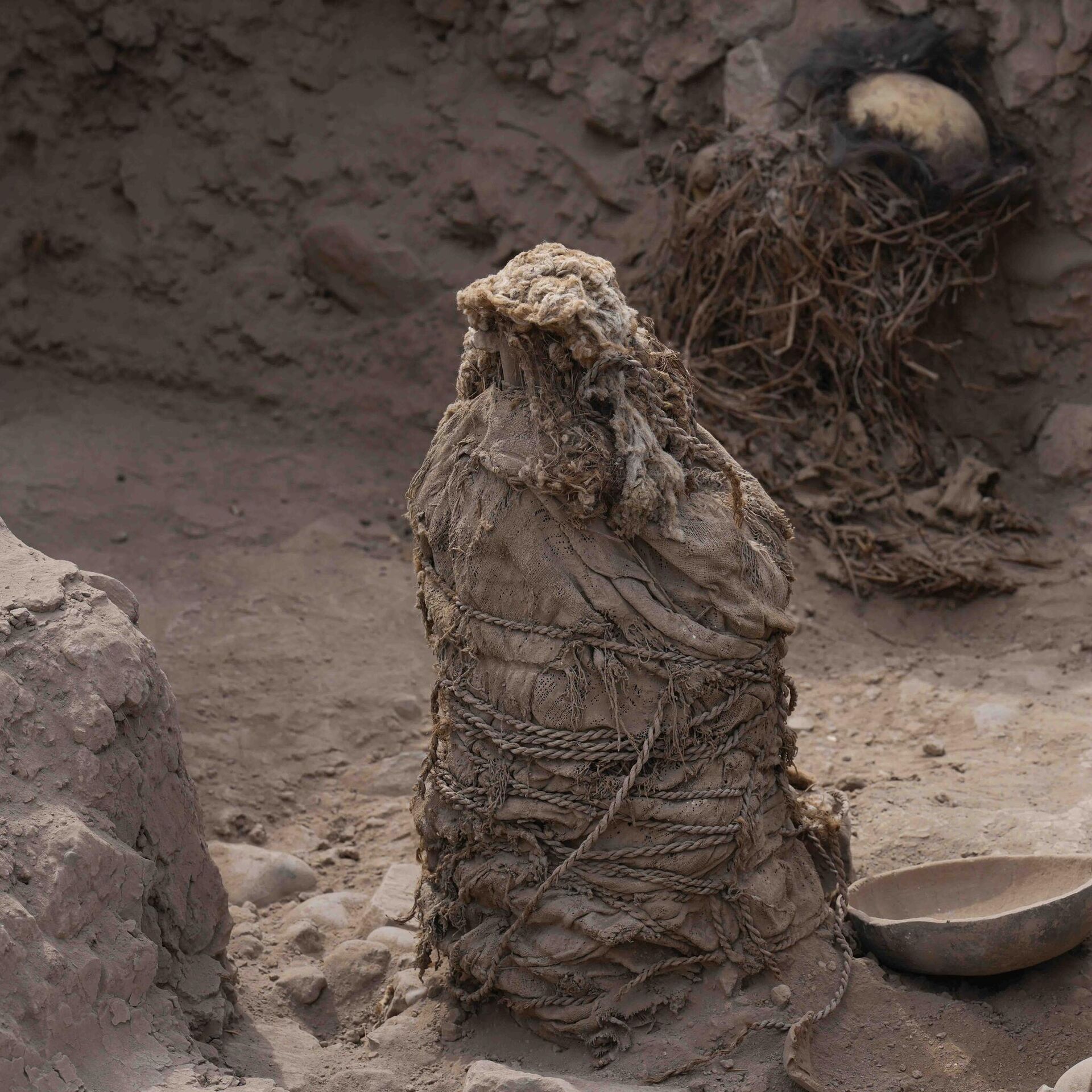 تقع المومياوات التي اكتشفها علماء الآثار البيروفيون في حي الريماك في ليما، بيرو، 20 نوفمبر 2023.