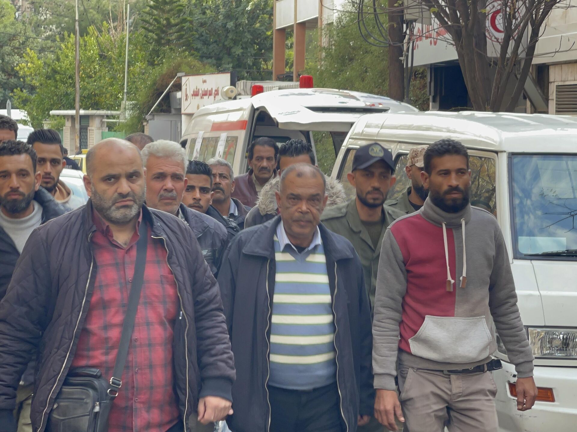 شق الموكب طريقه من أمام مشفى يافا في العاصمة السورية، وجال في شوارعها قبل أن يتوجه إلى مخيم (ذي النون) على أطراف دمشق الجنوبية، وسط رايات فلسطين التي رفعها المشيعون مطالبين بـ "الرد والقصاص لدماء الشهداء وجميع جرائم الإبادة الجماعية التي يرتكبها الاحتلال الإسرائيلي في قطاع غزة".
