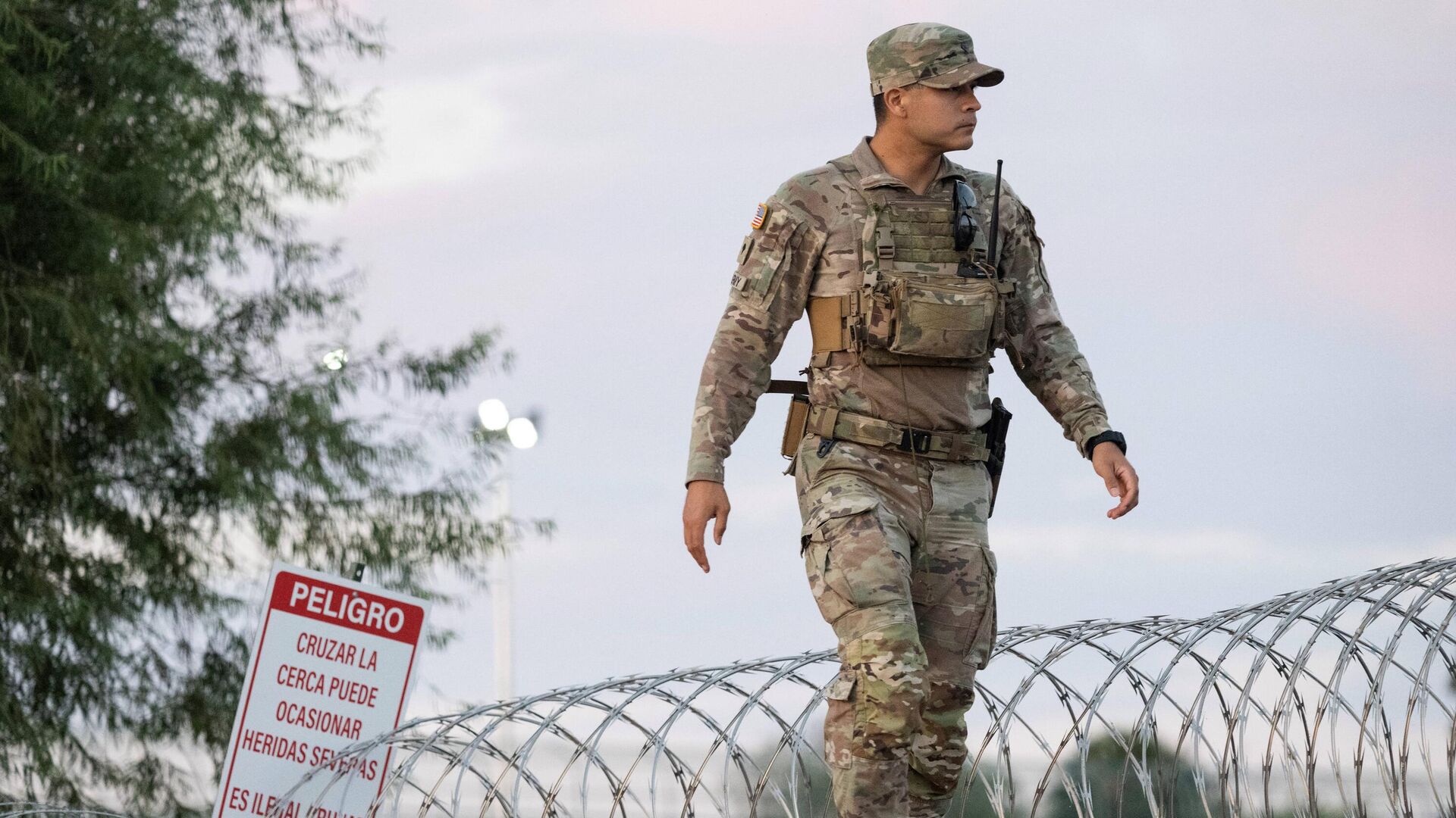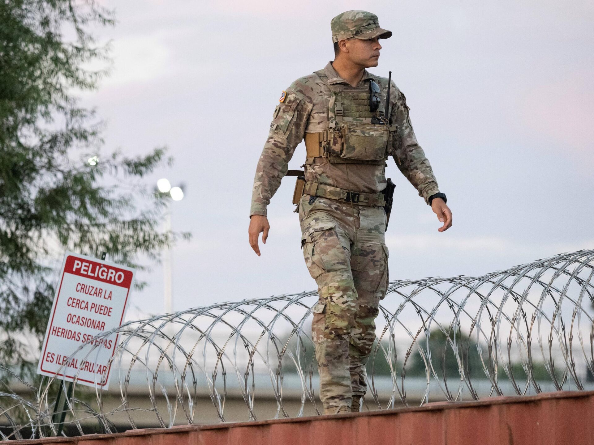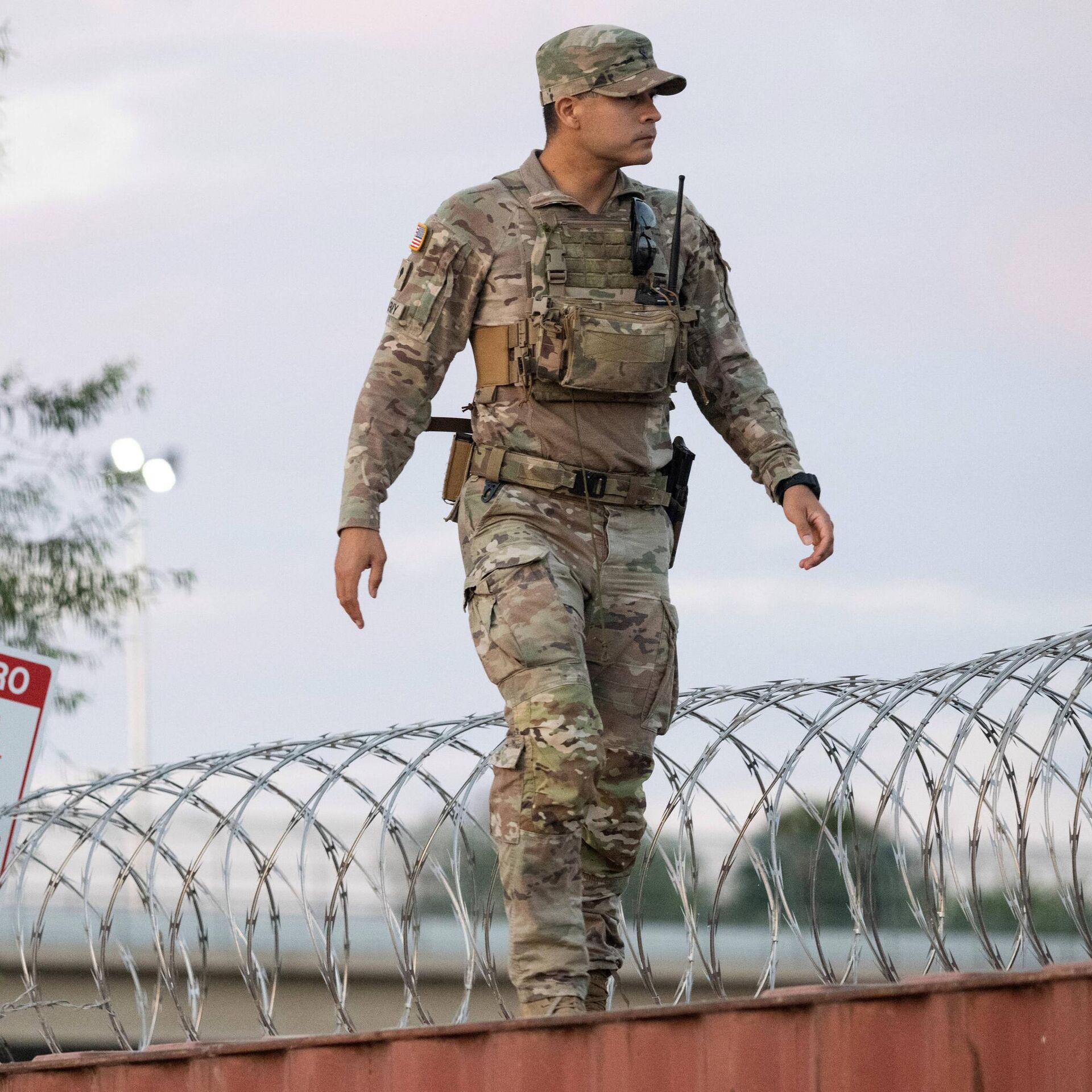 بينما كان أفراد الحرس الوطني الأمريكي في تكساس يراقبون ذلك ولكن لم يتدخلوا.