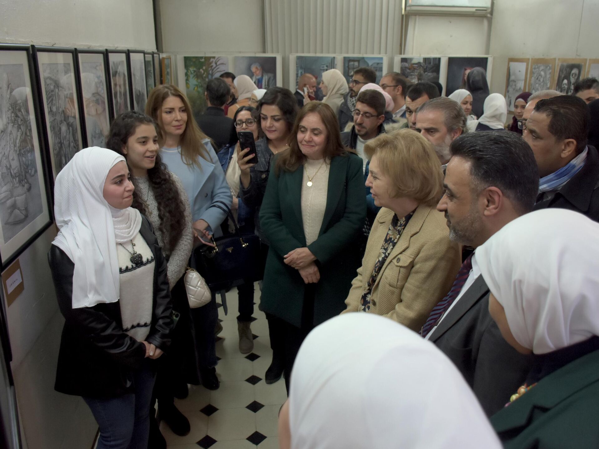 "عيوننا إليك" لم يكن مجرد عنوان لمعرض فني علق شبان سوريون على جدرانه عصارة أحاسيسهم، بل كانت كلمات عابرة للمكان، اختارها الشبان ليعبروا بلوحاتهم وألوانهم عن تضامنهم مع فلسطين.