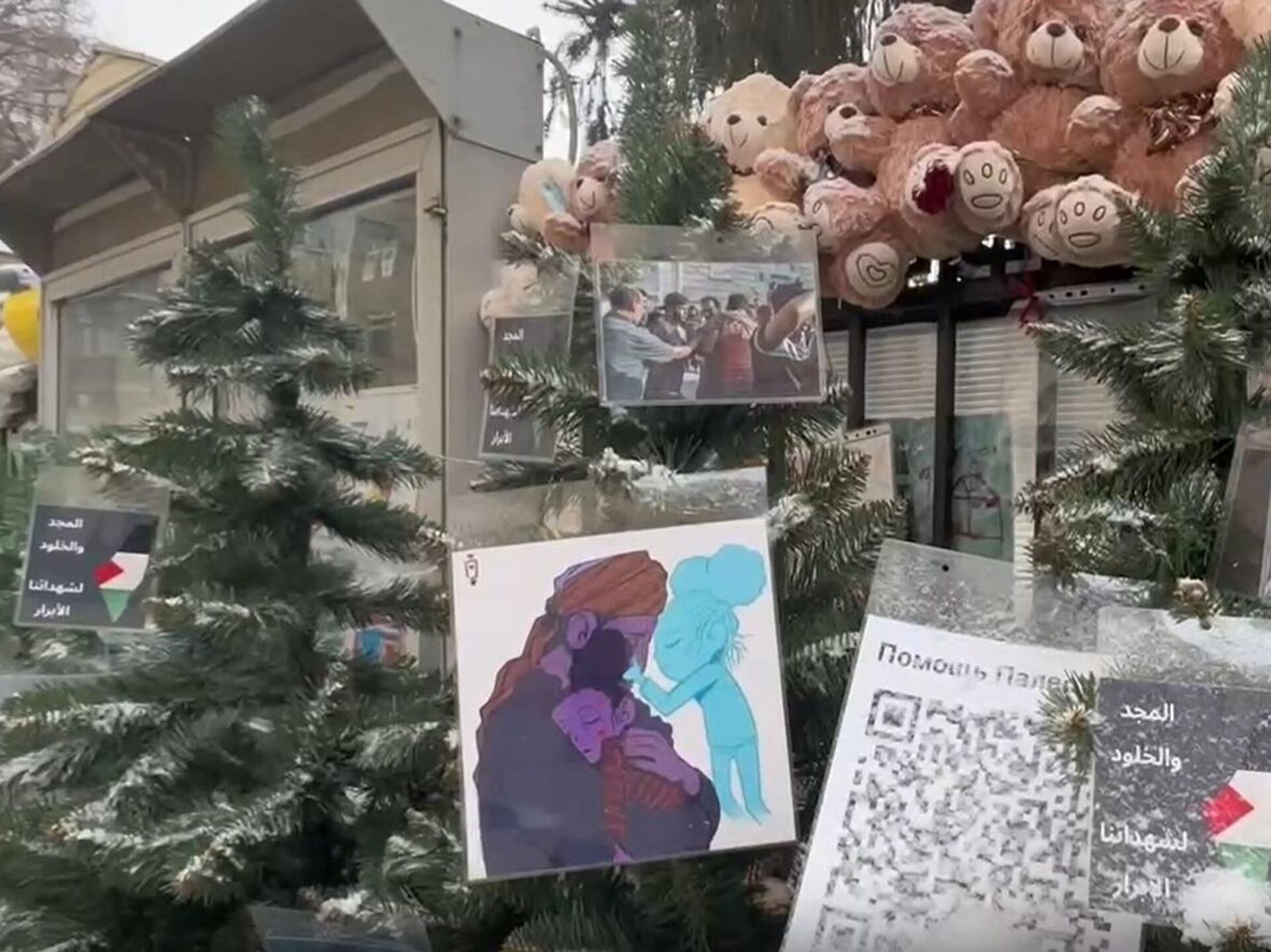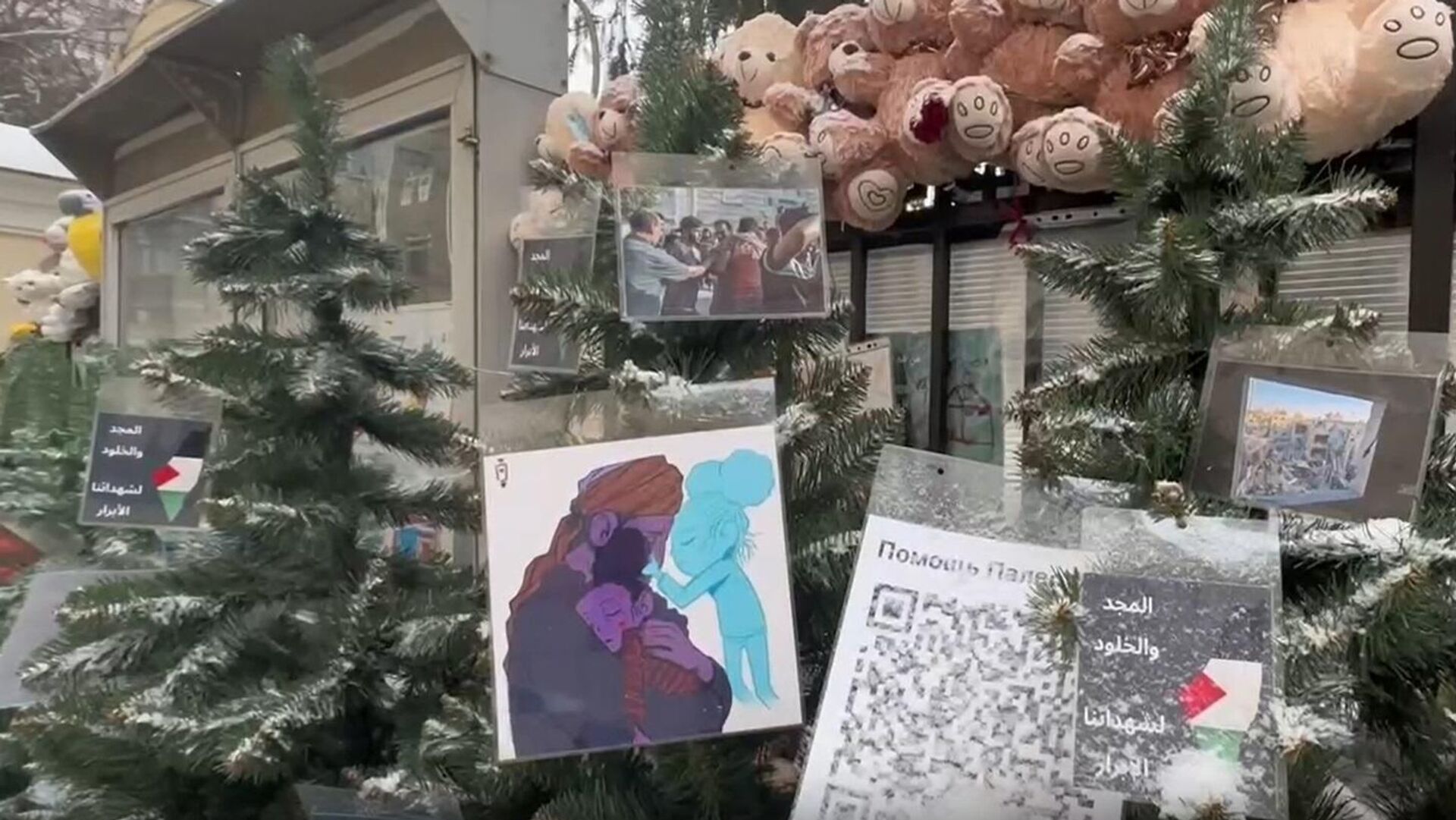 أشجار الميلاد "مثقلة بالمعاناة" أمام السفارة الفلسطينية في موسكو... فيديو