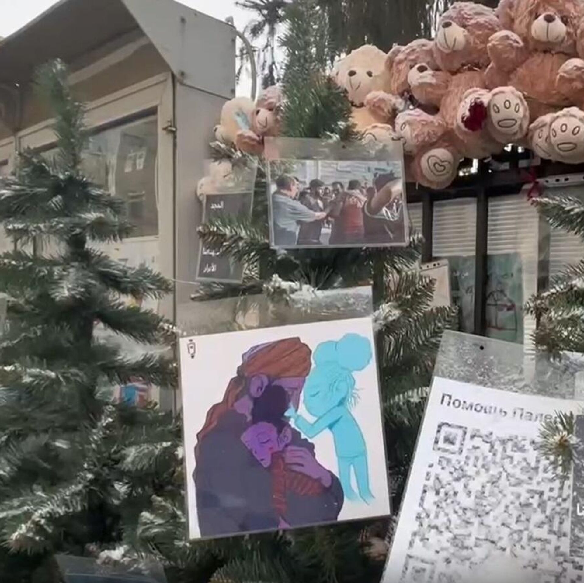 تزينت أغصان أشجار الميلاد التي وضعت أمام السفارة الفلسطينية في موسكو، بصور تثقل كاهل الإنسان قبل النبات، حيث جسدت هذه الصور المعاناة والأزمة الإنسانية التي يمر بها سكان قطاع غزة اليوم.