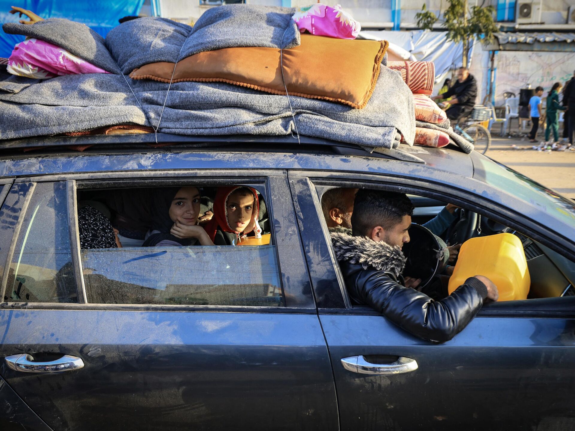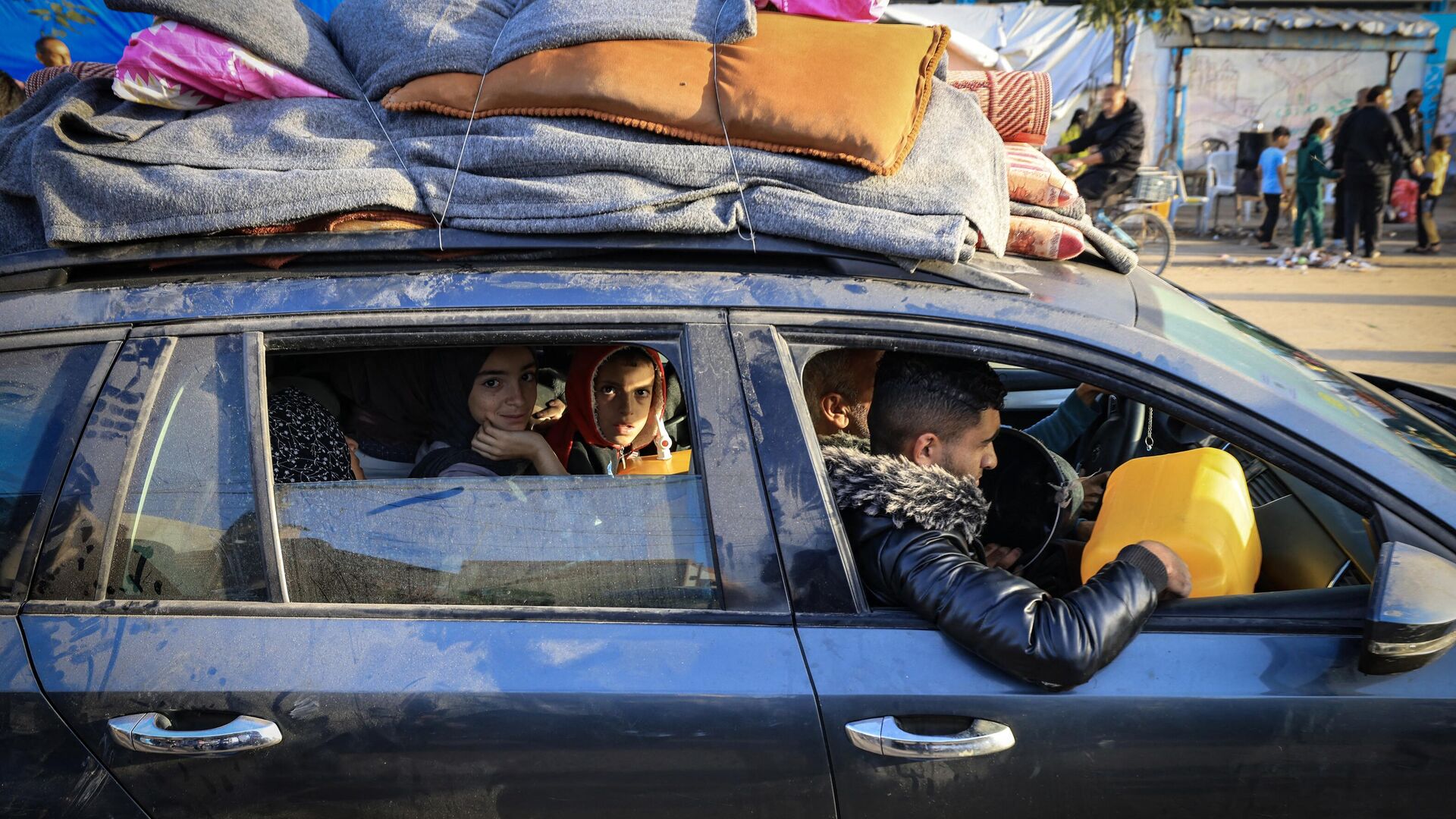 © AFP 2023 / Mahmud Hamsالفلسطينيون الذين لجأوا إلى ملاجئ مؤقتة يعودون إلى منازلهم في شرق خانيونس في جنوب قطاع غزة خلال الساعات الأولى من هدنة تستمر أربعة أيام بين إسرائيل وحماس، 24 نوفمبر 2023
