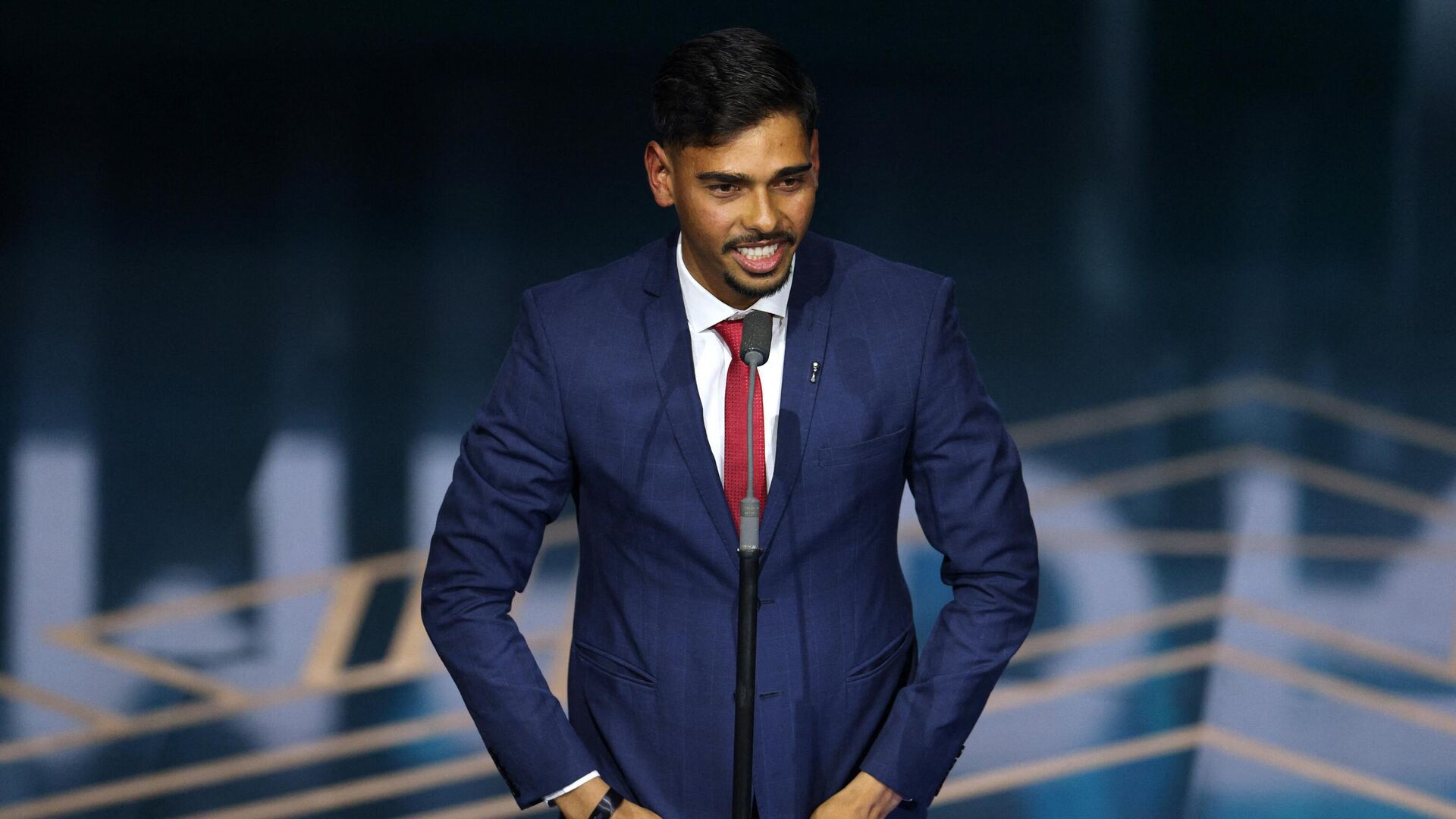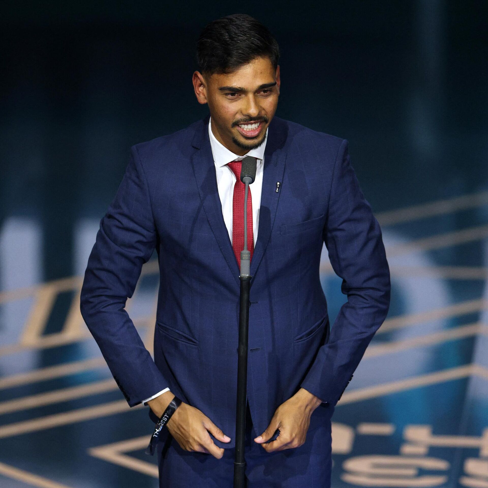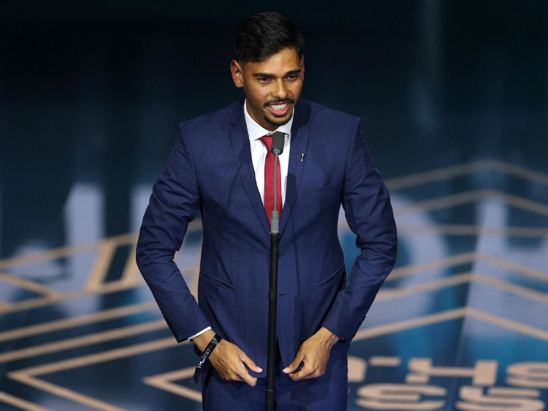 حاز البرازيلي جوليرمي مادروجا، على جائزة "بوشكاش" المقدمة لأجمل هدف في عام 2023، خلال حفل توزيع جوائز "ذا بيست" الخاص بالاتحاد الدولي لكرة القدم "فيفا"، مساء... 16.01.2024, سبوتنيك عربي