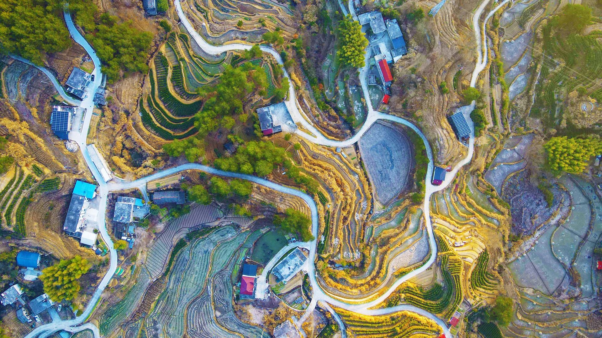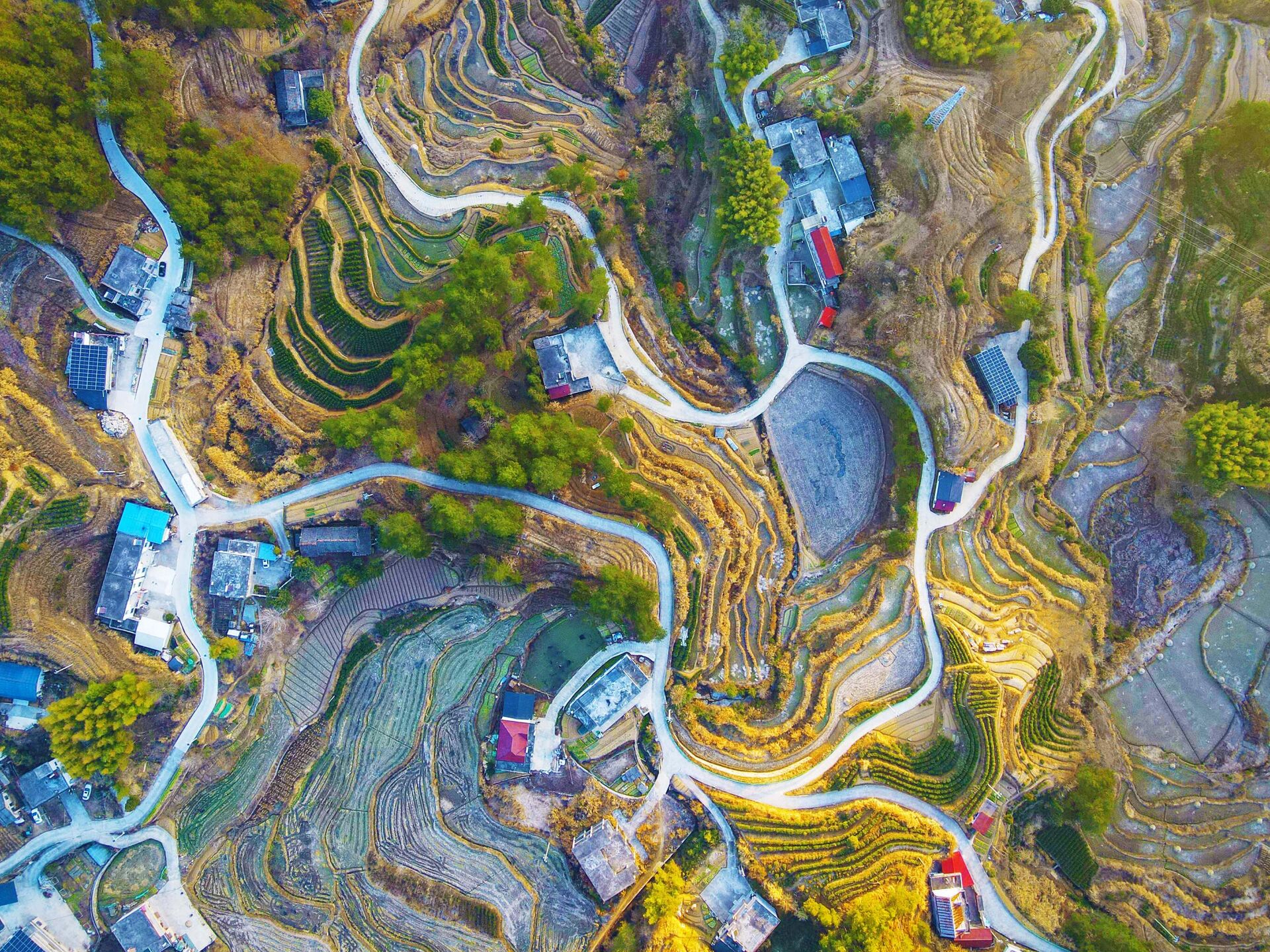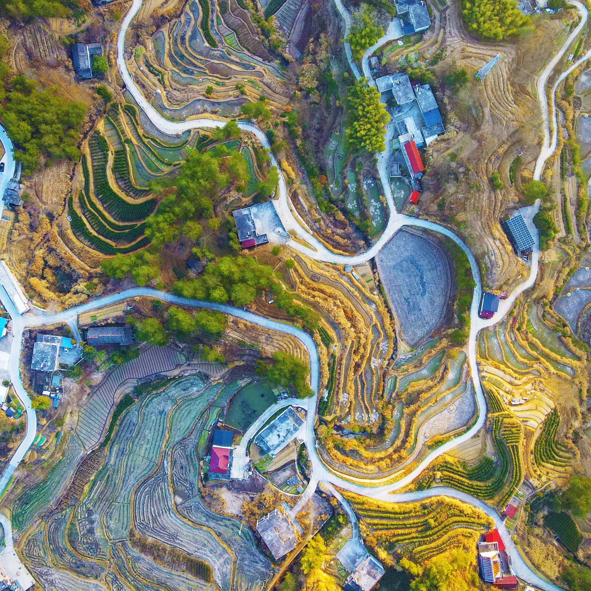 تلال متدرجة في قرية هيلينج في آنكينج، آنهوي، الصين.
