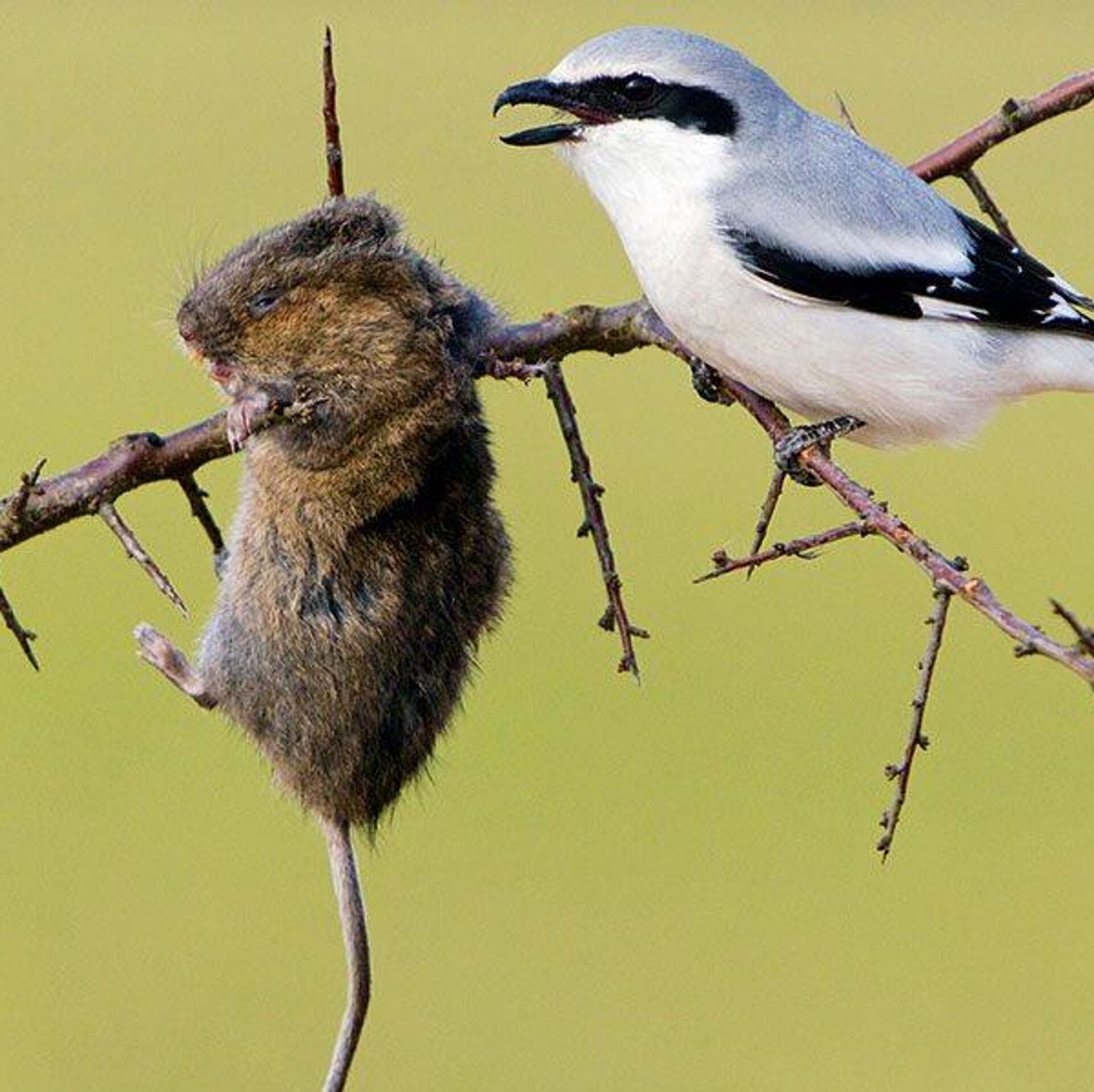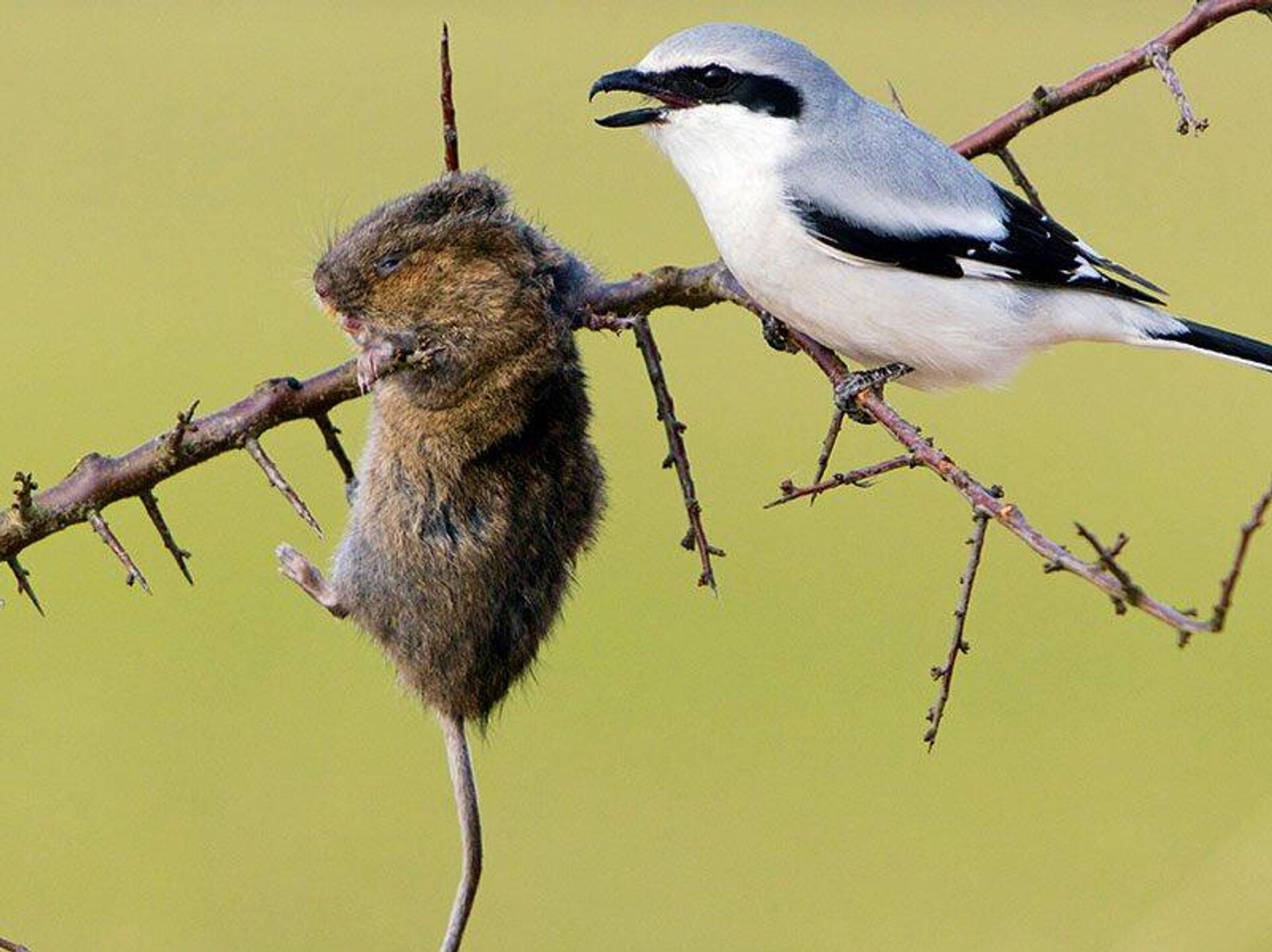 يمكن لهذا الطائر الجميل المنظر، الصغير الحجم، ابن أمريكا الشمالية والمدعو بـ"الصرد"، أن يفترس ما هو أكبر منه حجما بطريقة تكاد تكون خيالية أو بالحد الأدنى لا تصدق طريق طعنها وغزّها، قبل وضعها على العصي لتناولها لاحقًا.