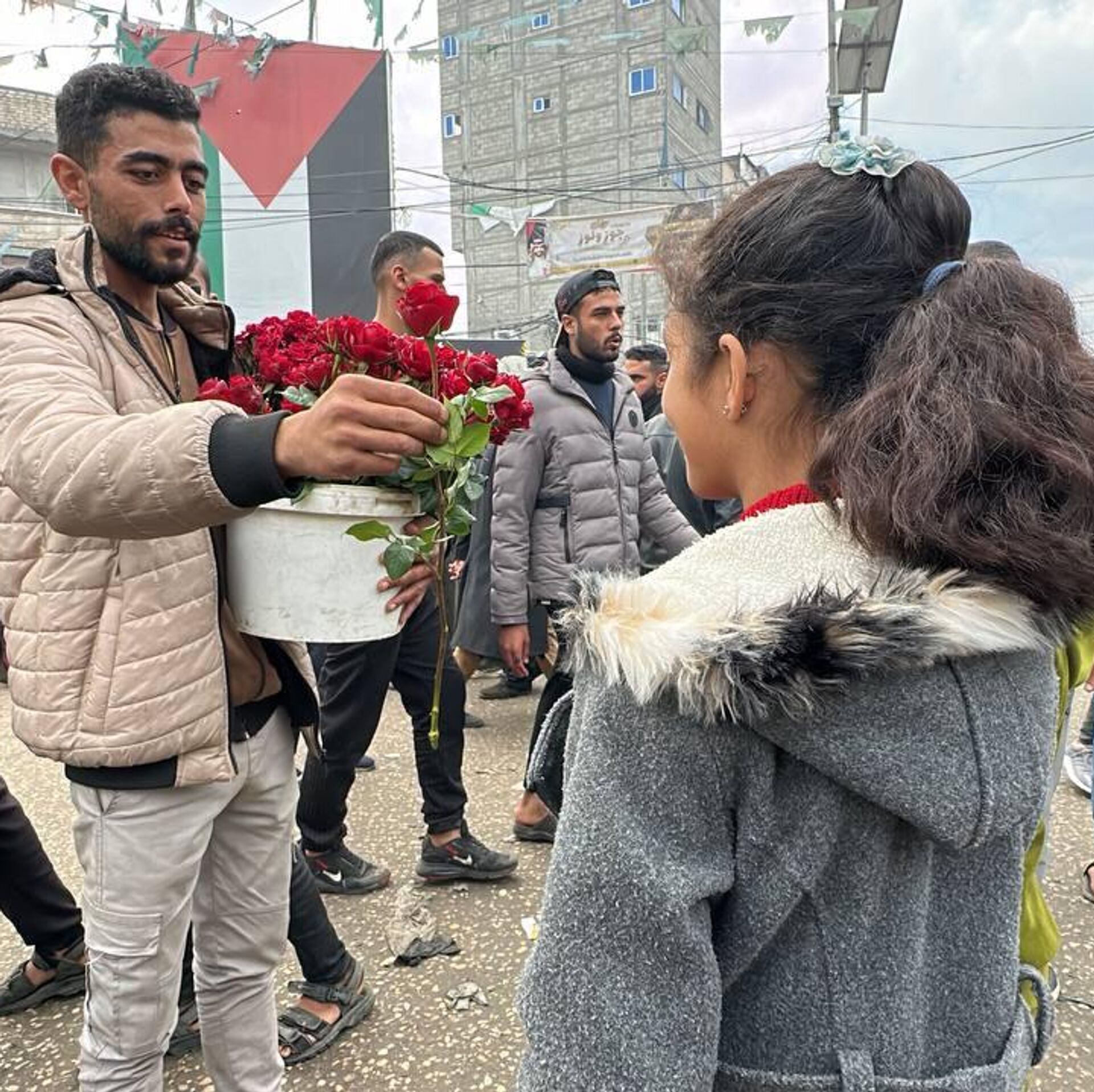 بائع الورد في رفح يرسم الابتسامة والأمل على وجوه الفلسطينيين في ظل الحرب