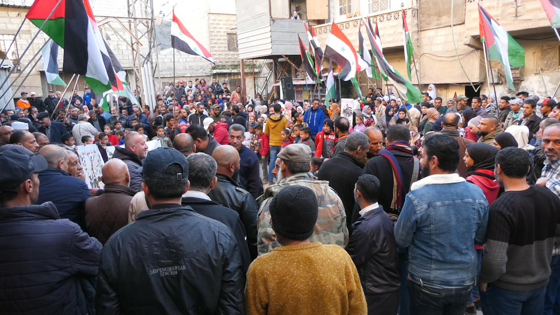 نظمت مخيمات اللاجئين الفلسطينيين على أطراف العاصمة السورية دمشق، مساء أمس الثلاثاء، وقفة تضامنية متزامنة مع أهالي غزة، الذين يتعرضون للحرب والتجويع، للتنديد بـ"الجرائم" التي ترتكبها القوات الإسرائيلية بحق المدنيين بدعم وتمويل من الولايات المتحدة الأمريكية.