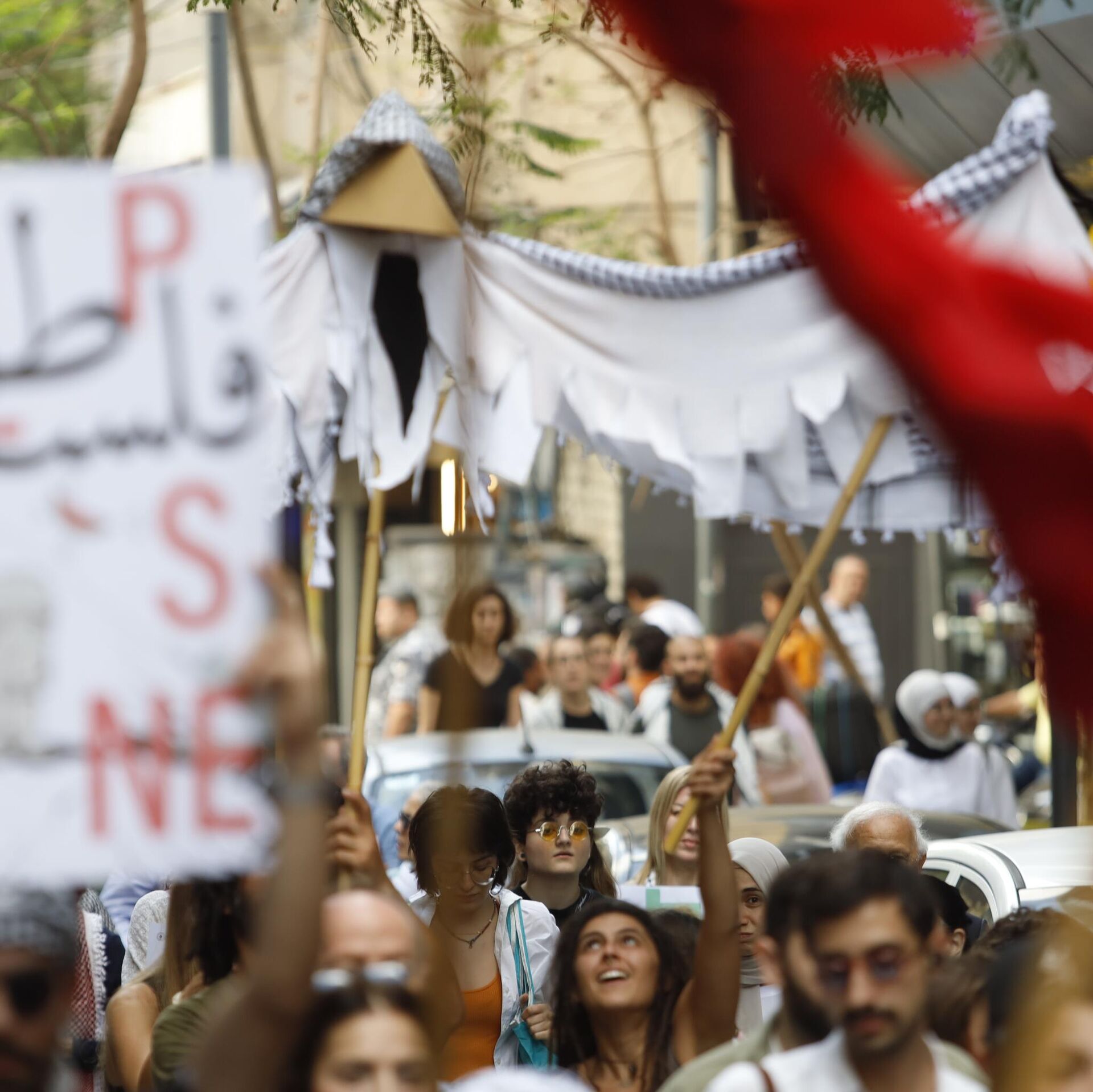 وقالت منى الحلاق، المشاركة في المسيرة: "هذه المسيرة لدعم أهالي غزة وفلسطين، من بيروت إلى فلسطين، تقوم بها مبادرة "حسن الجوار" في الجامعة الأمريكية في بيروت، ومركز "رادا ومعتز صواف" لدراسات الشرائط المصورة العربية. تبدأ المظاهرة من أمام الجامعة مرورا بشوارع الحمرا وصولاً إلى مسرح المدينة".