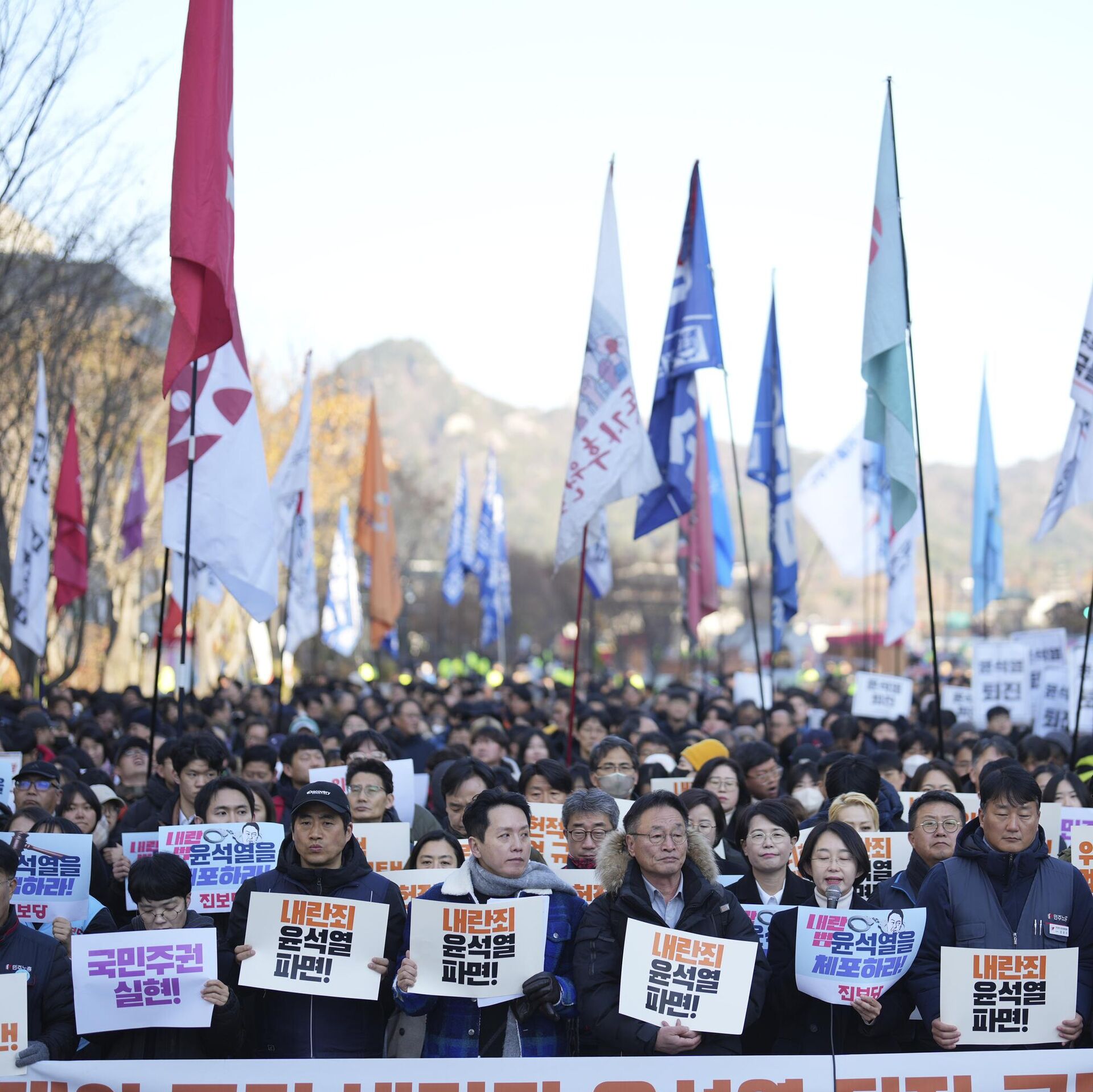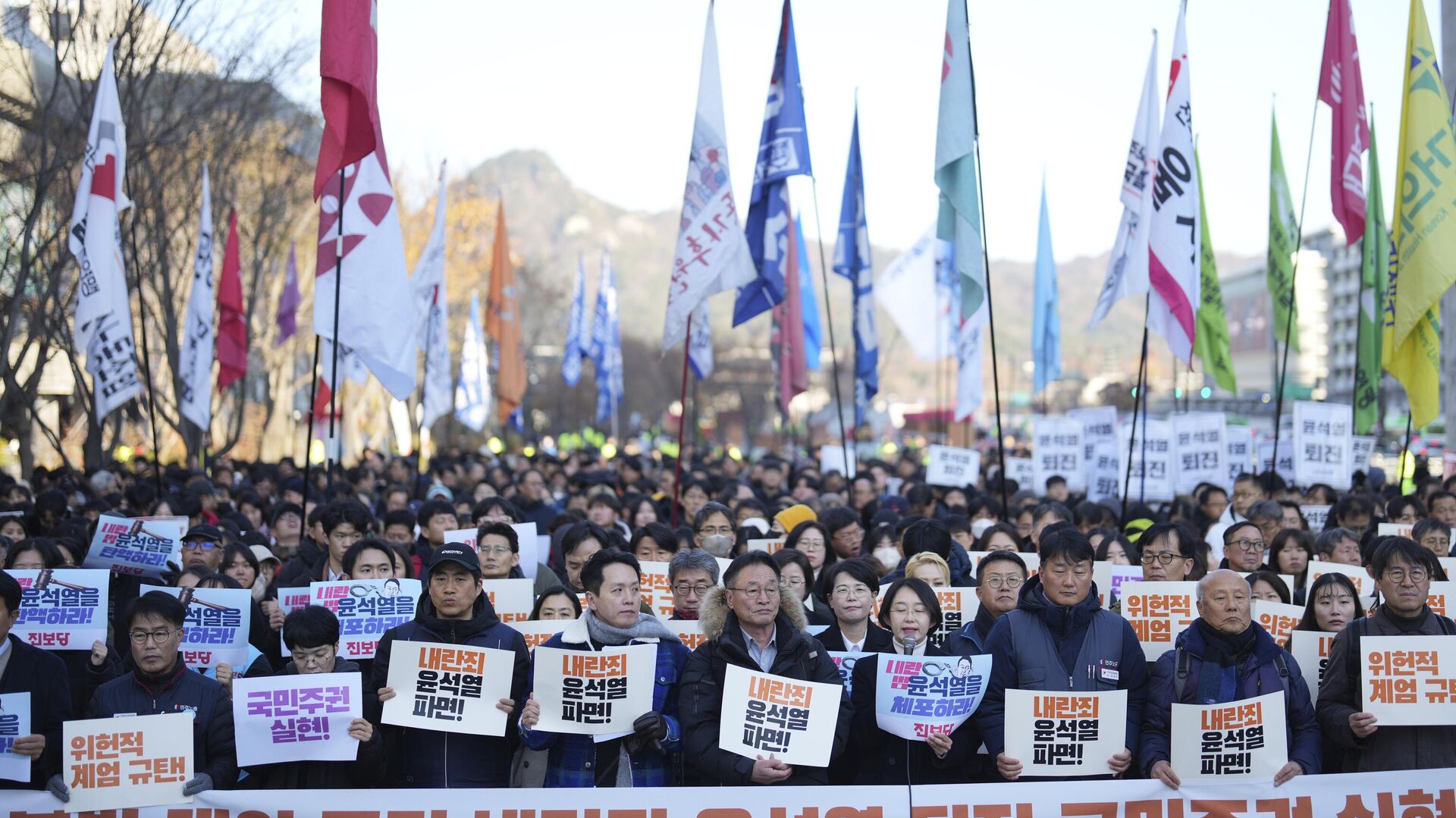 من جانب آخر، قالت قناة "واي.تي.إن" الكورية الجنوبية، "دعا الاتحاد الوطني لنقابات العمال الديمقراطيين في كوريا الجنوبية إلى الإضراب العام، لأجل غير مسمى حتى استقالة الرئيس يون سوك يول".