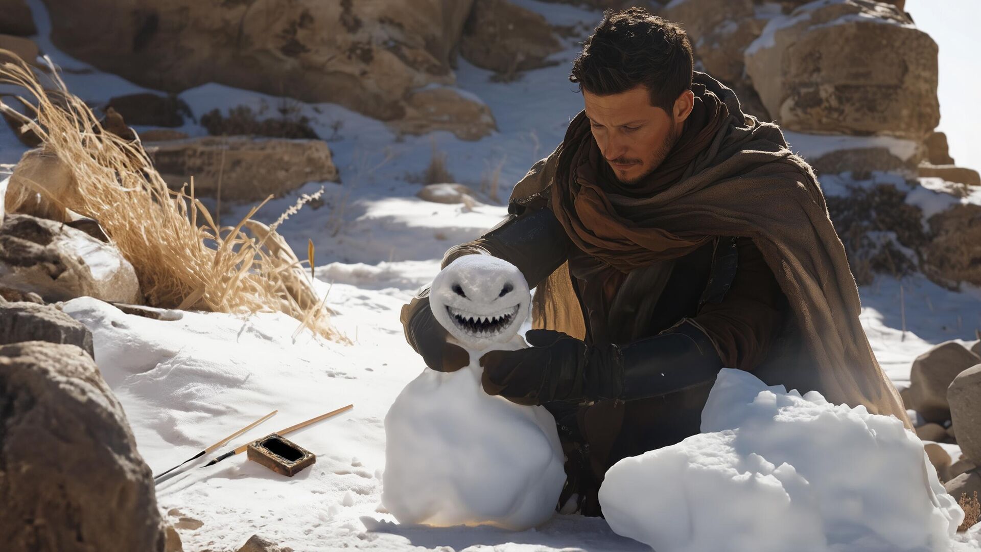 الفتاة تهرب بسرعة من رجل الثلج "الشرير". كانت هناك مخاوف كثيرة مرتبطة برجال الثلج: على سبيل المثال، لم يُنصحوا بالقيام بها أثناء اكتمال القمر لتجنب المشاكل والكوابيس والفشل. في البلدان الشمالية، كان من غير المناسب النظر إلى رجل ثلج من النافذة. إذا كان شخص ما يمشي ليلاً وصادف بالصدفة تمثالًا ثلجيًا، فيجب عليه تغيير طريقه في أسرع وقت ممكن ومحاولة عدم الاهتمام به.