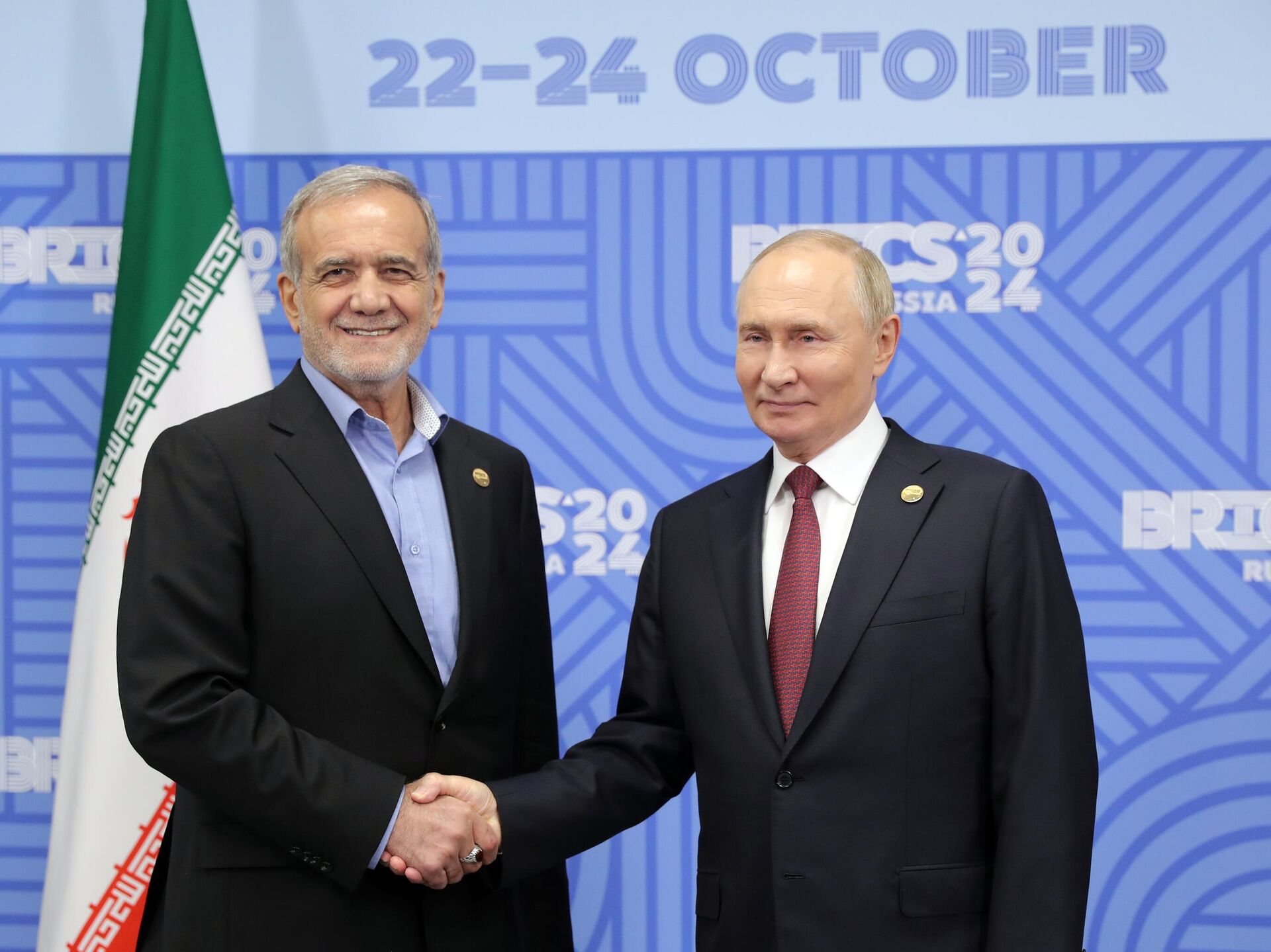© Sputnik . Фотохост-агентство brics-russia2024.ru / الانتقال إلى بنك الصورالرئيس الروسي فلاديمير بوتن مع الرئيس الإيراني مسعود بزشكيان