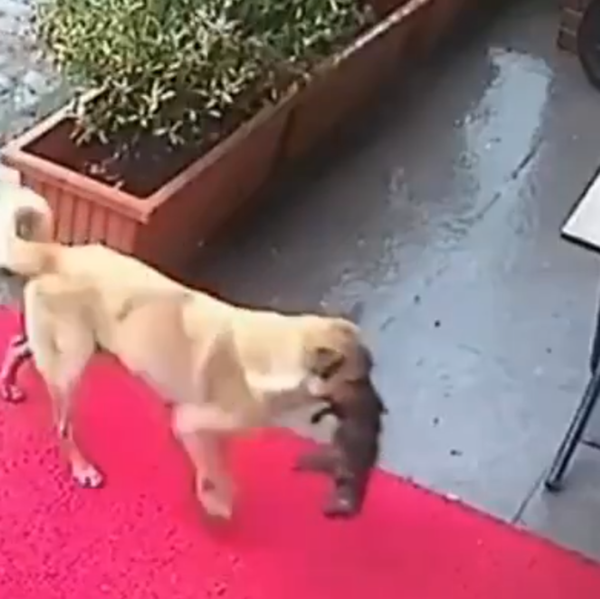 ويظهر في الفيديو كيف تحمل الكلبة جروها المريض بفمها مسرعة نحو عيادة الطبيب البيطري، من أجل تقديم المساعدة للجرو.