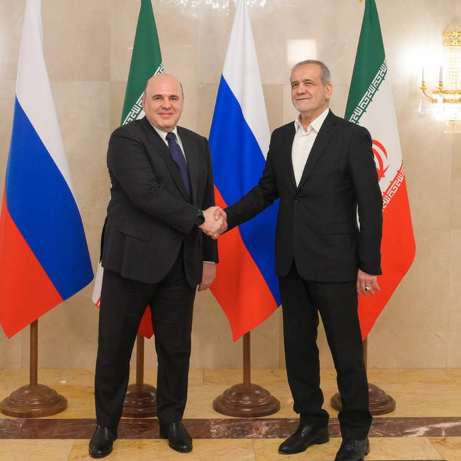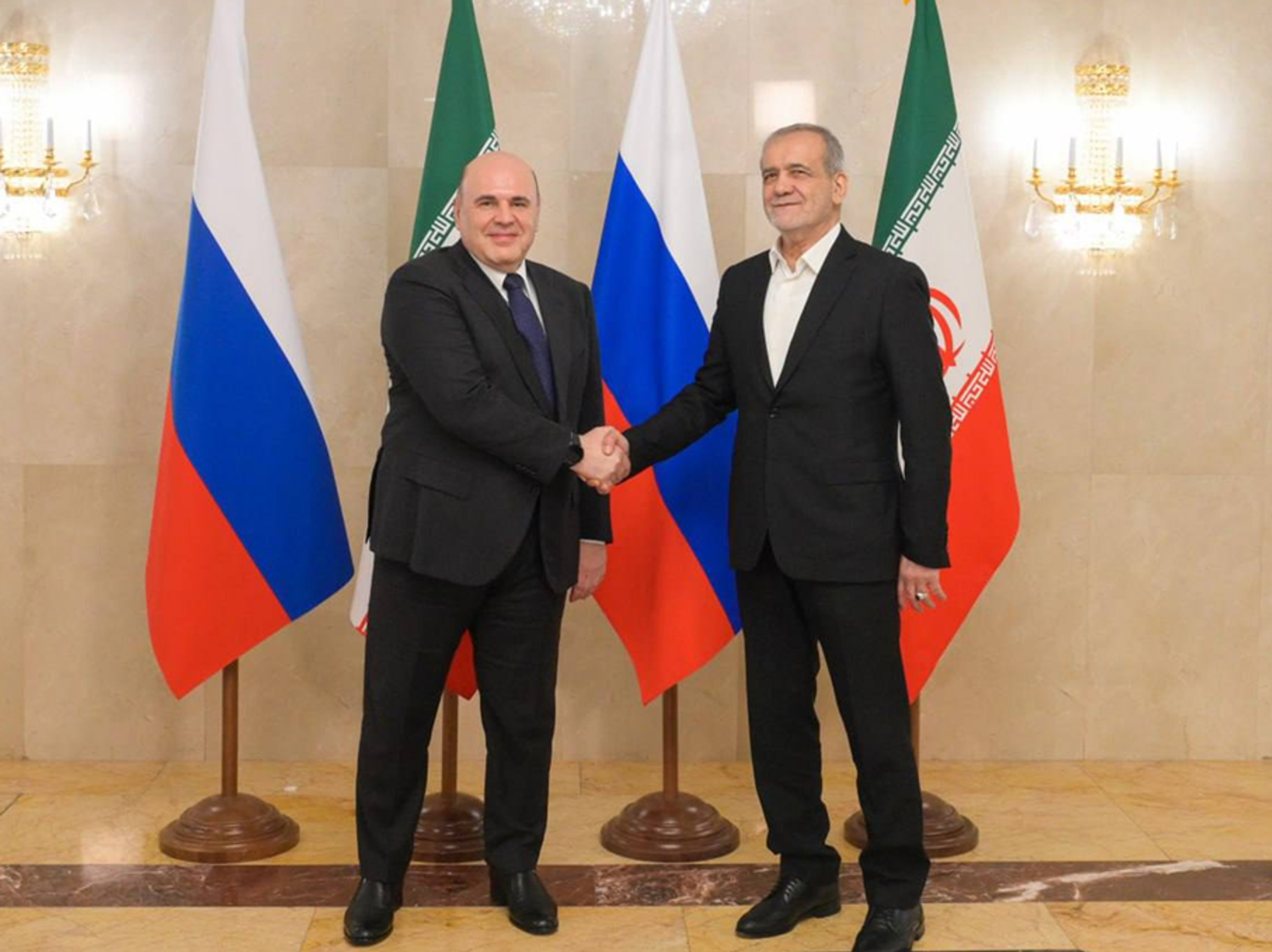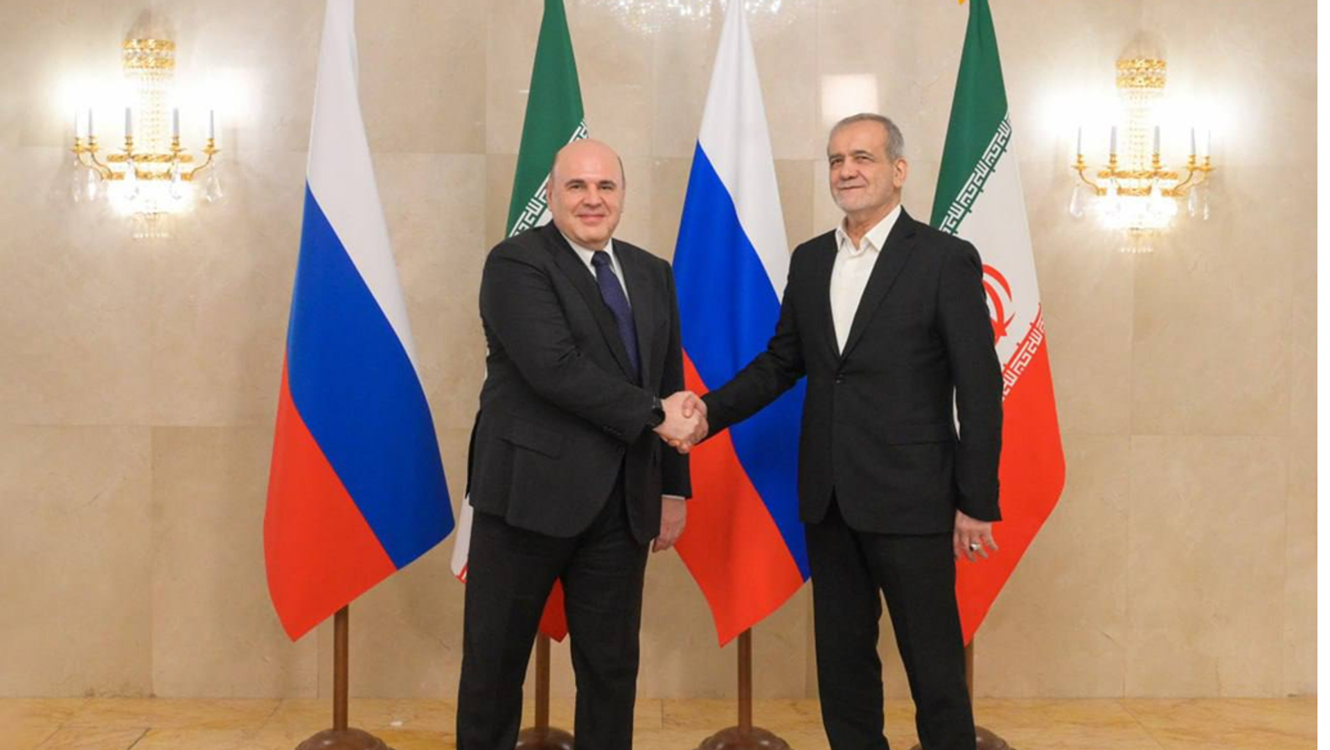 رئيس الوزراء الروسي يلتقي بالرئيس الإيراني مسعود بزشكيان