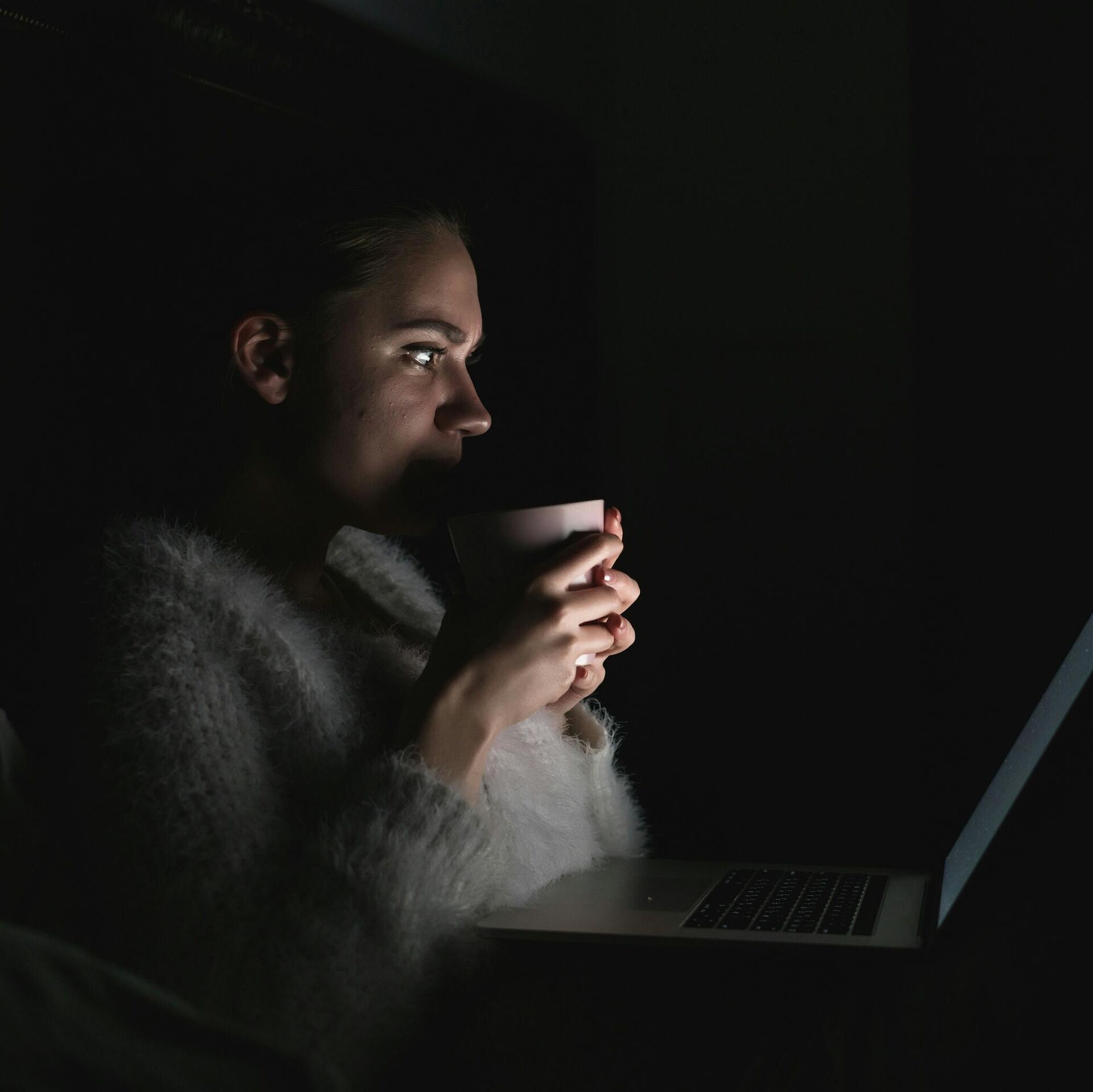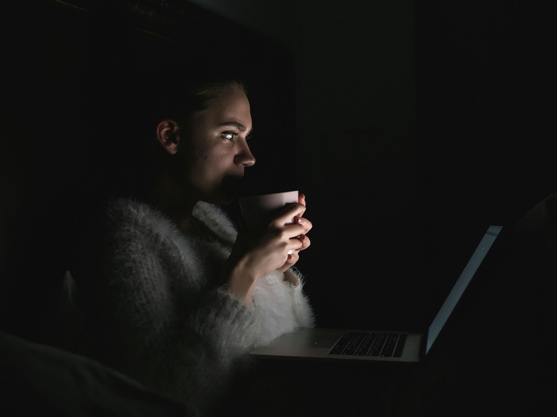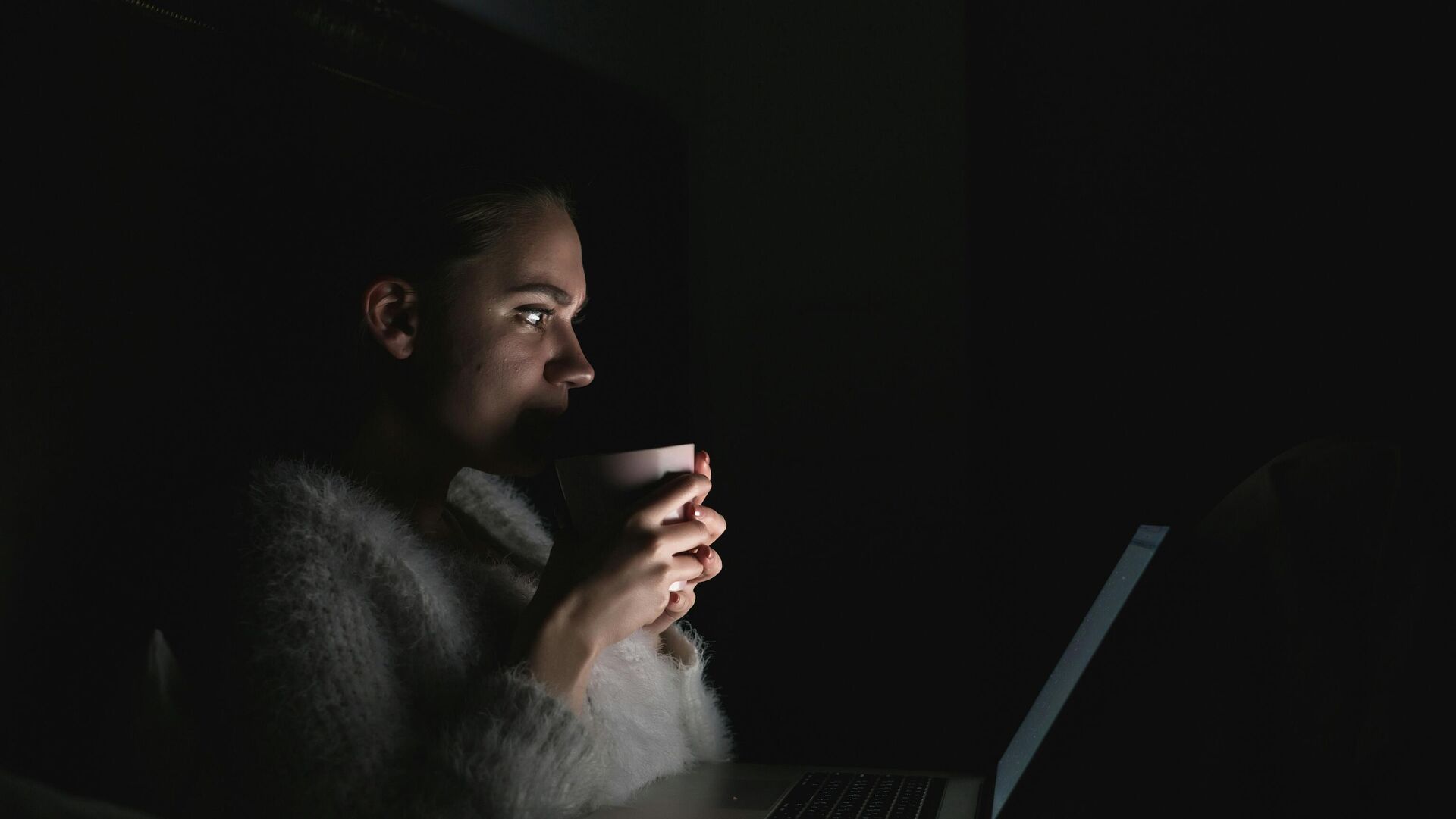 © Photo / unsplash/ Anastasiia Nelenصورة لفتاة تعمل على الحاسوب ليلا