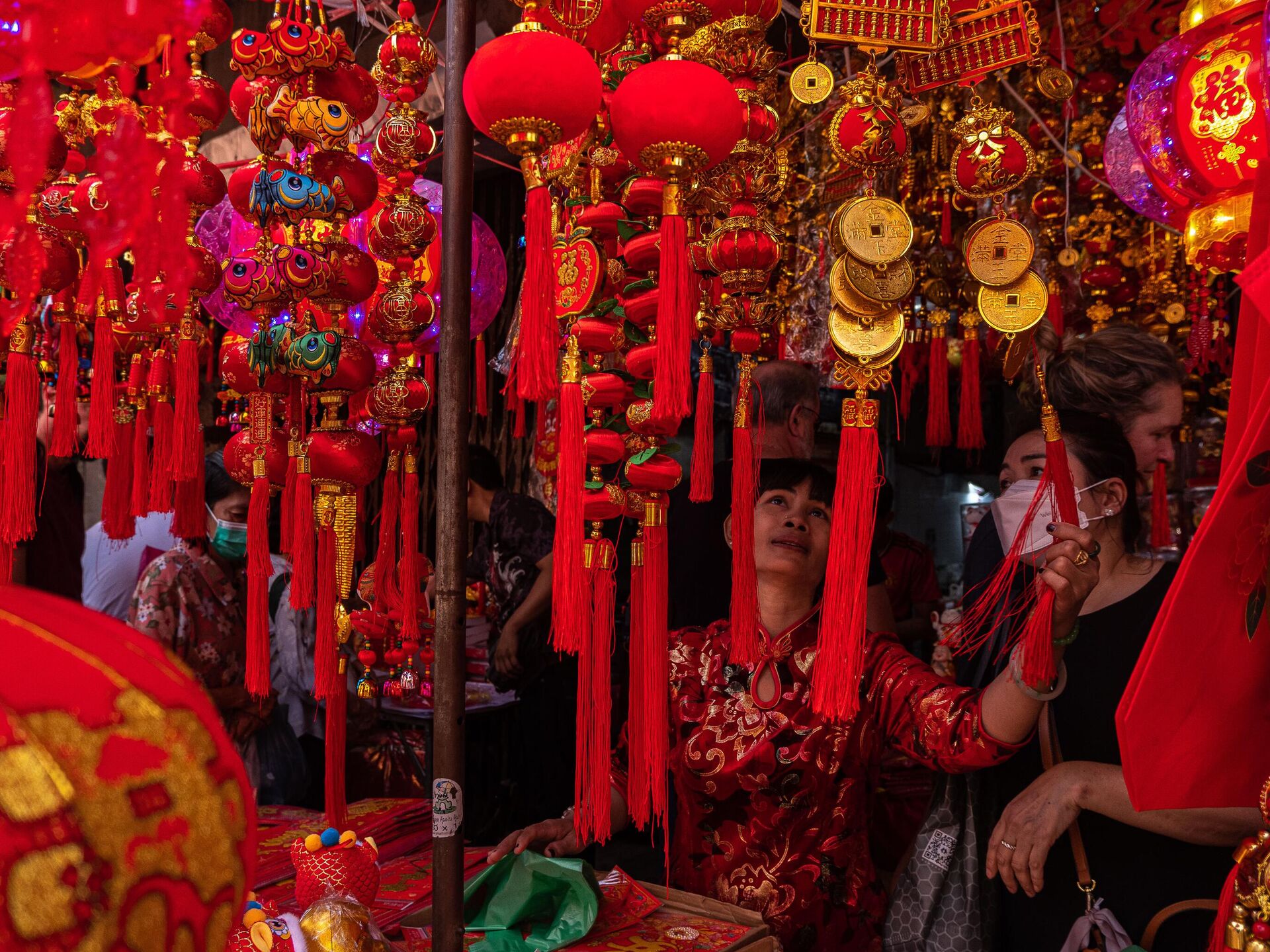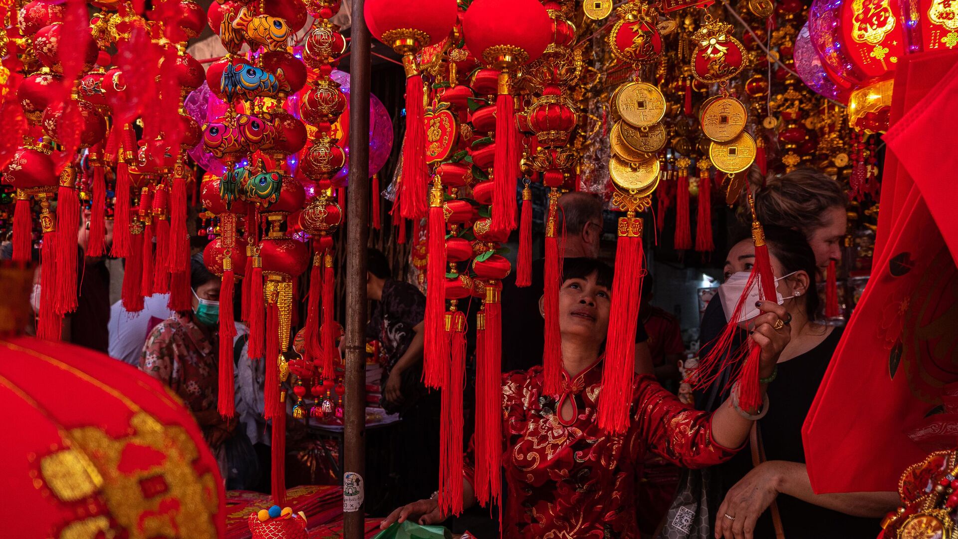 © Getty Images / SOPA Images/LightRocket/Peerapon Boonyakiat نساء يضعن الزينة خلال مهرجان رأس السنة القمرية الصينية، في متجر في الحي الصيني قبل حلول رأس السنة القمرية الصينية في بانكوك.