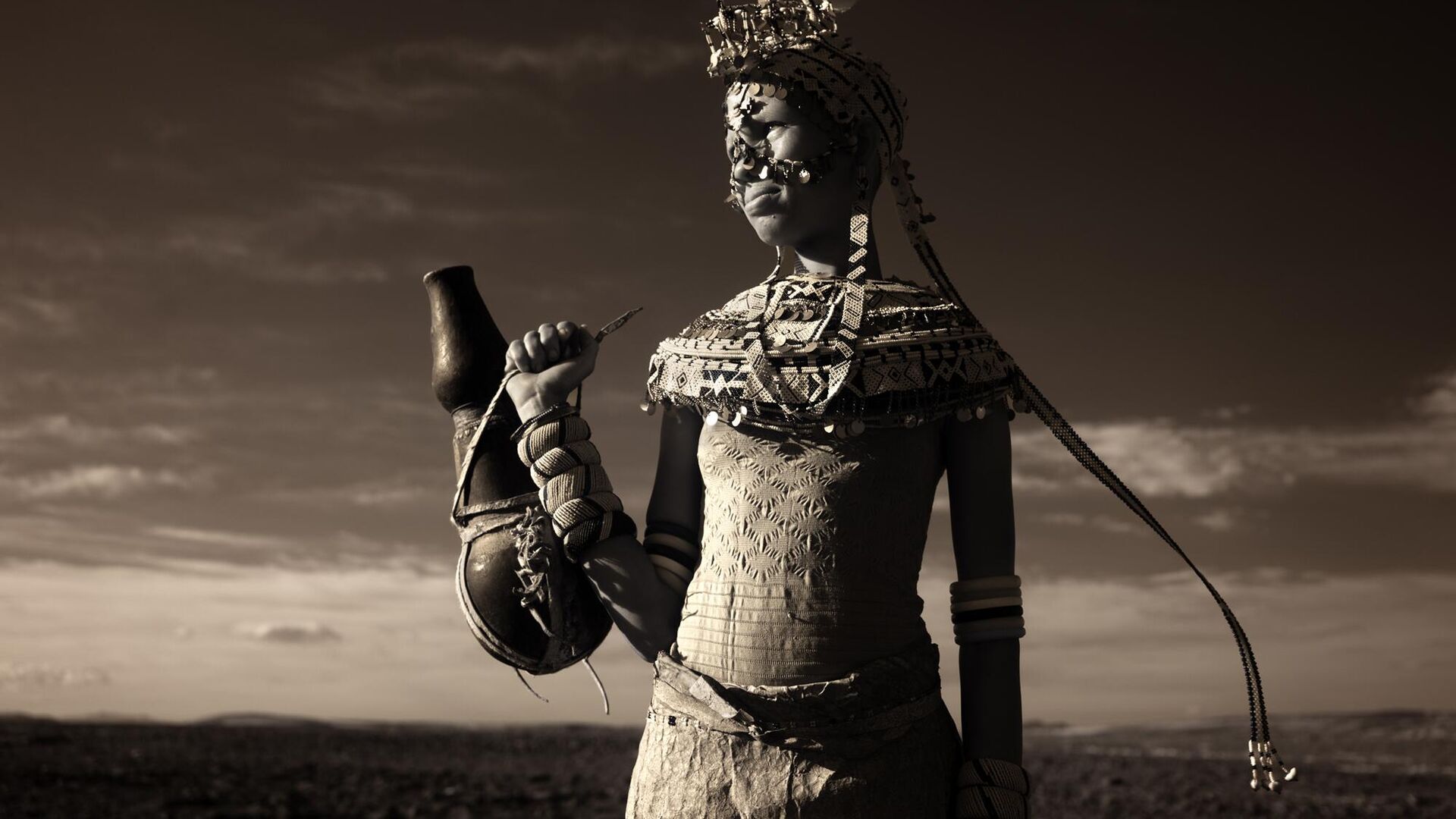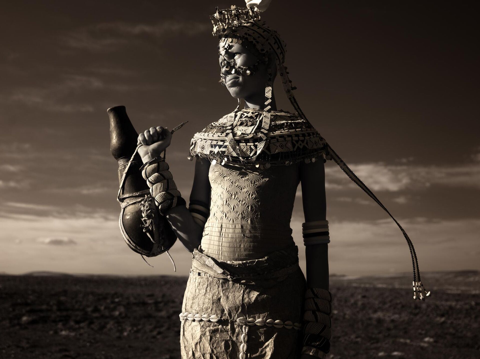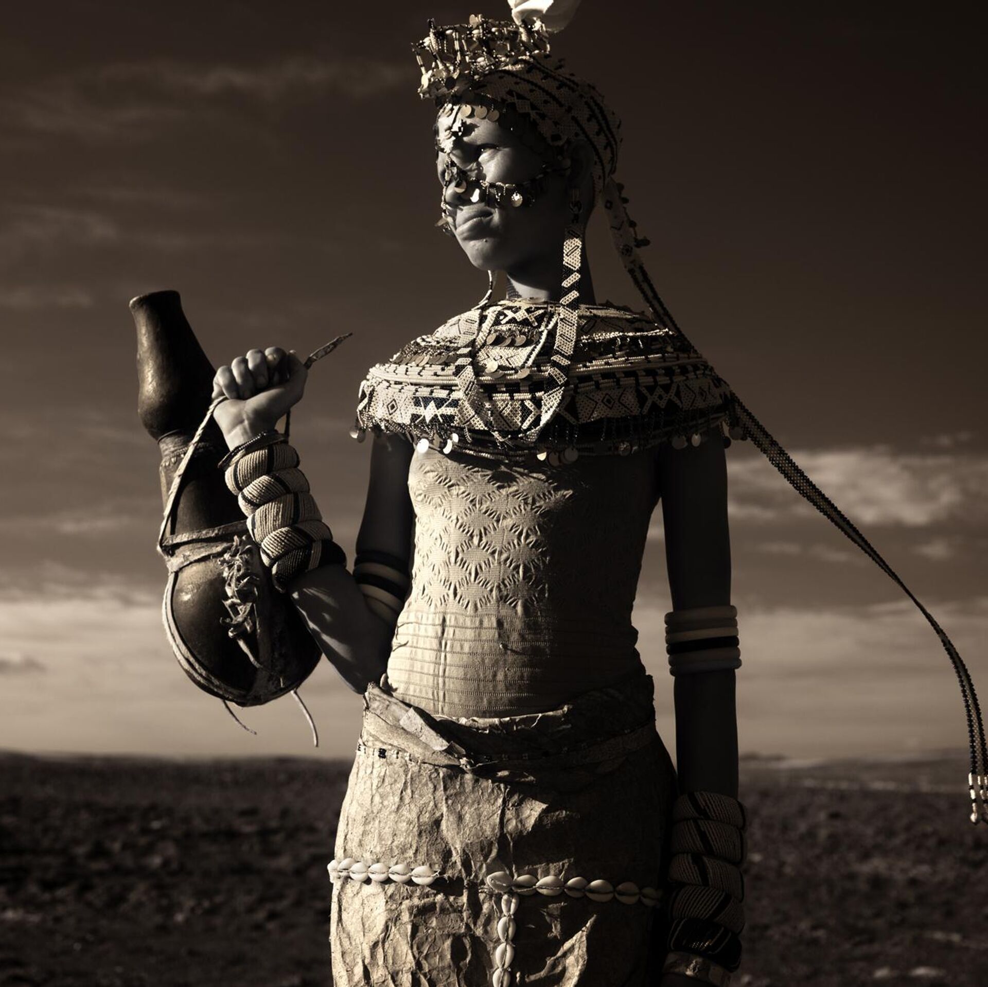 الجائزة الكبرى، فتاة من قبيلة الرينديلي في، لويانغالاني شمالي كينيا، تتزين بملابس تقليدية متقنة ومغطاة بالخرز والحلي التي ترمز إلى استعدادها للزواج واجتذاب الزوج، للمصور بايبر ماكاي، الولايات المتحدة الأمريكية.