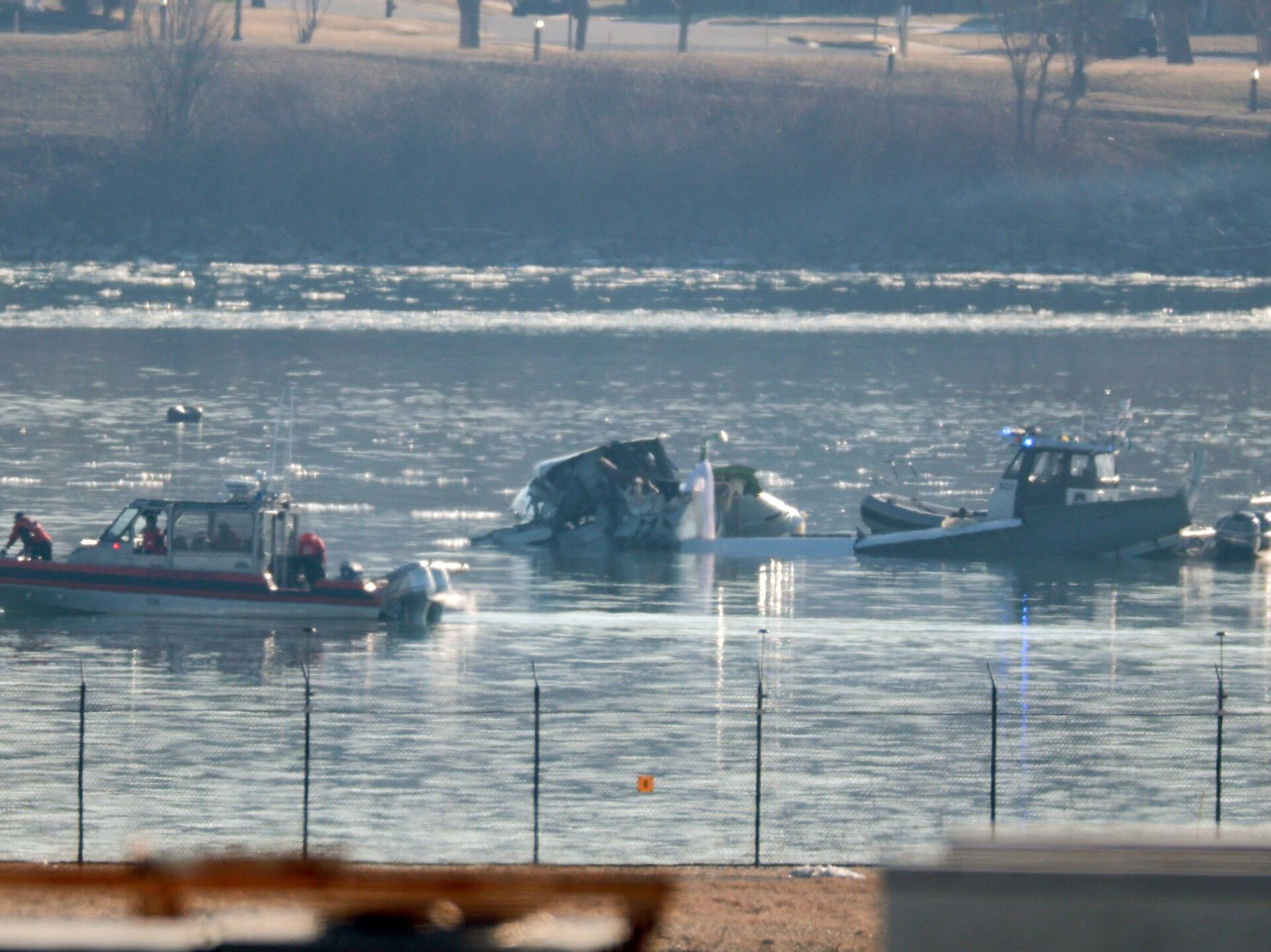© Getty Images / Kayla Bartkowskiتبحث وحدات الاستجابة للطوارئ في موقع تحطم طائرة تابعة لشركة الخطوط الجوية الأمريكية على نهر بوتوماك بعد حادث وقع الليلة الماضية أثناء اقترابها من مطار رونالد ريغان الوطني