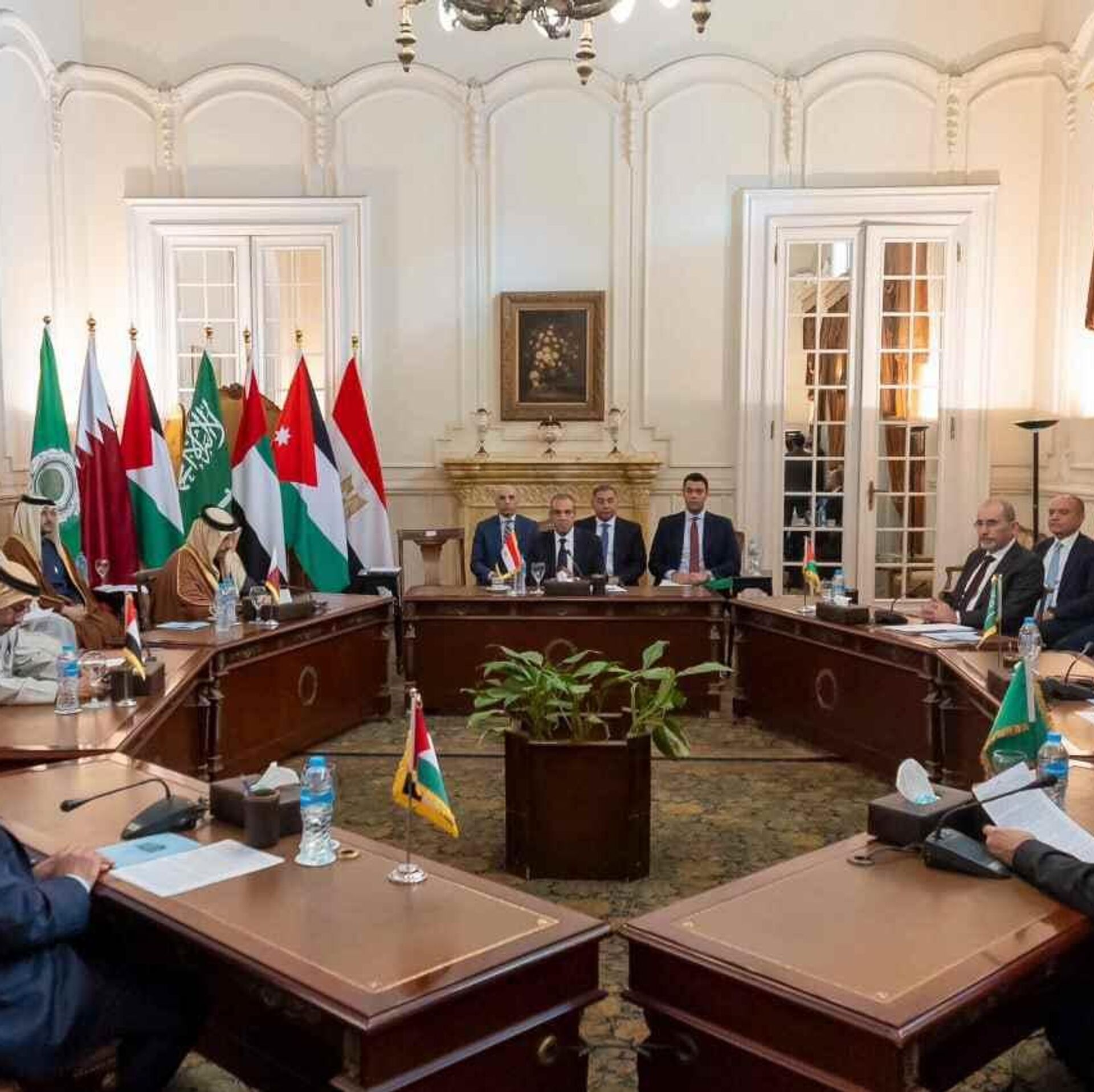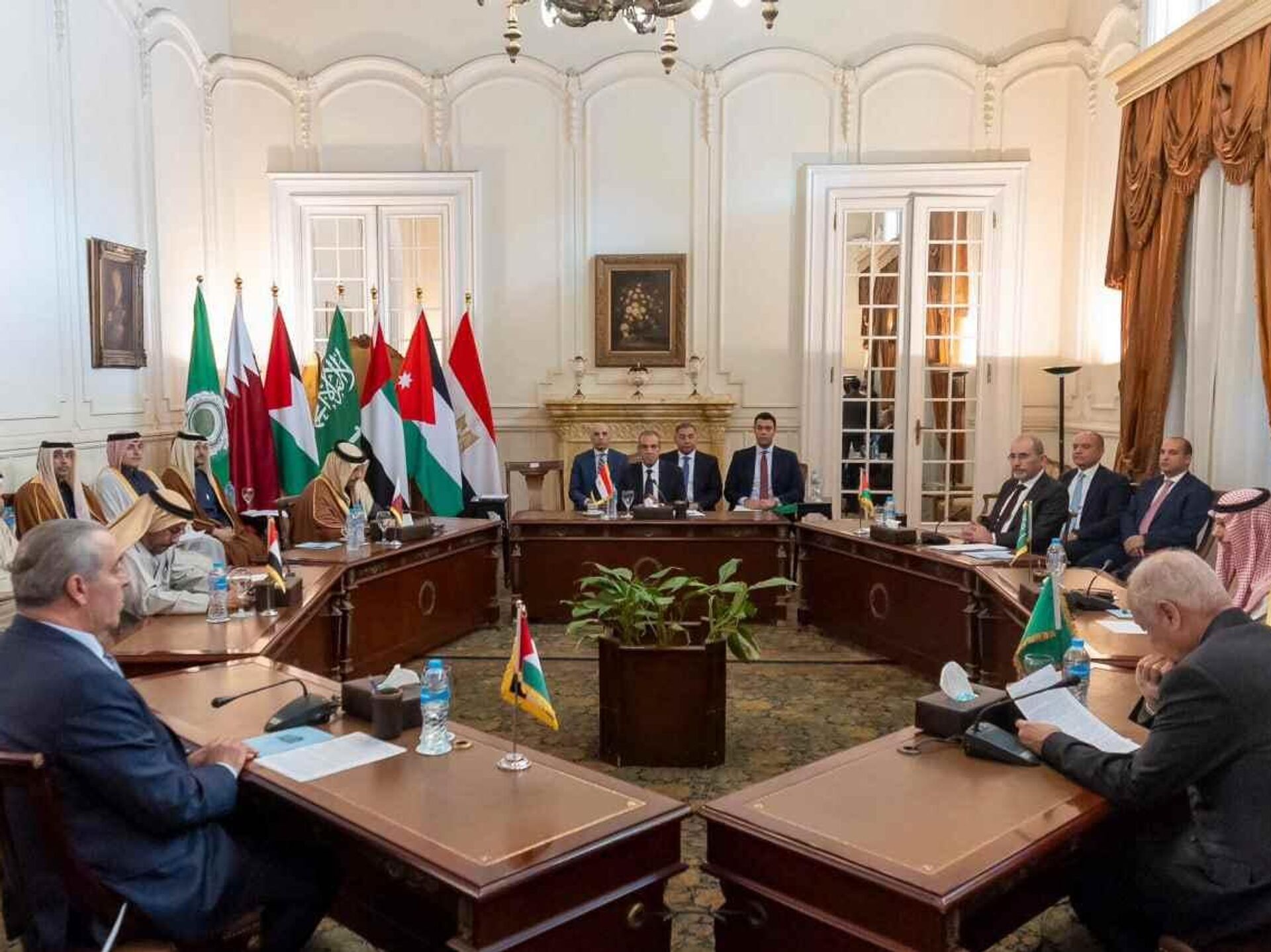 12:55 GMT 01.02.2025 (تم التحديث: 15:07 GMT 01.02.2025) بدعوة من جمهورية مصر العربية، عُقد في القاهرة، اليوم السبت، اجتماع وزاري رفيع المستوى ضم وزراء خارجية كل من الأردن، الإمارات، السعودية، قطر، ومصر، إلى جانب أمين سر اللجنة التنفيذية لمنظمة التحرير الفلسطينية ممثلاً لدولة فلسطين، والأمين العام لجامعة الدول العربية.