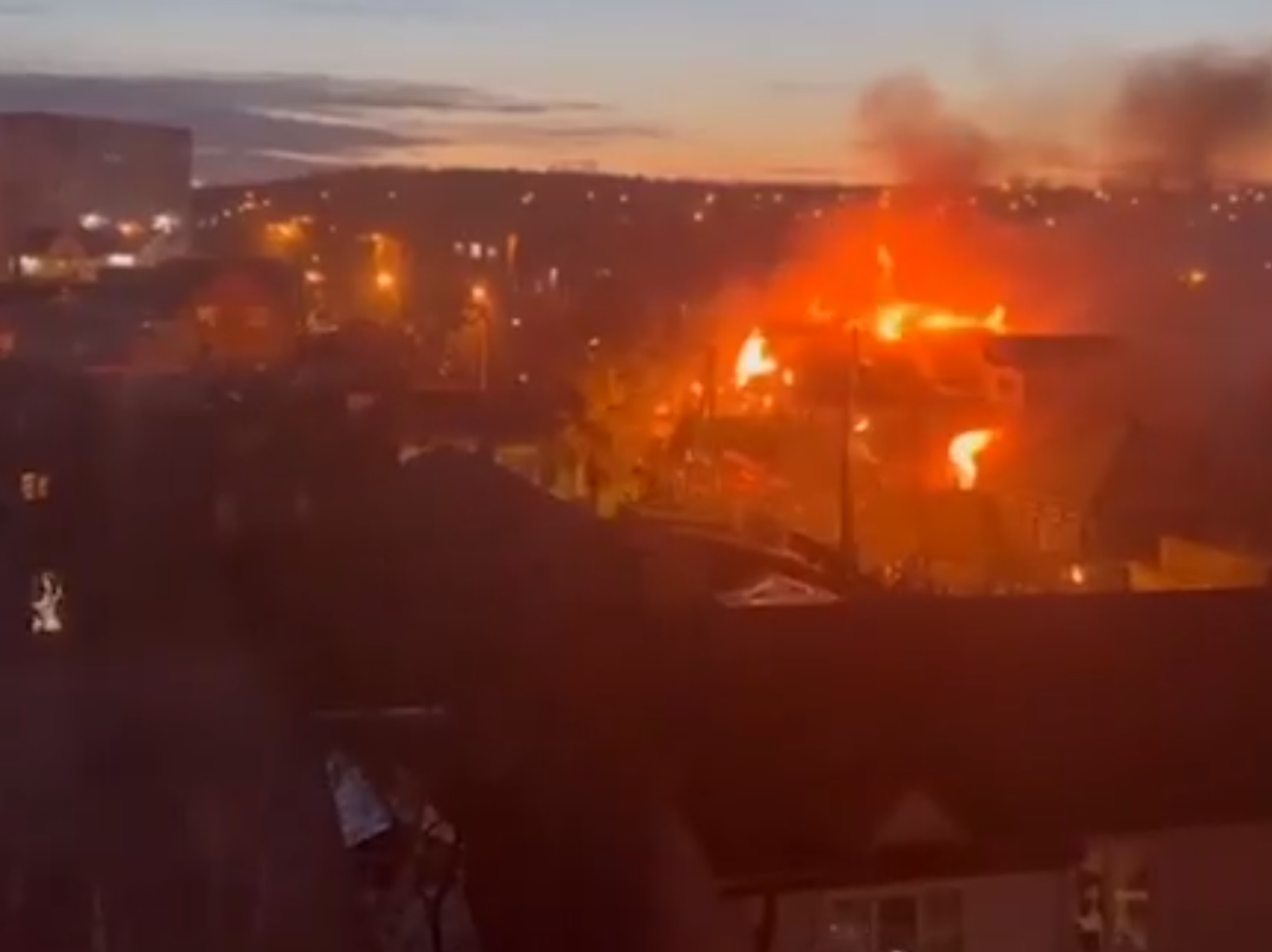 طائرة صغيرة في مدينة فيلادلفيا بولاية بنسلفانيا الأمريكية، على مبانٍ سكنية، ما أدى إلى اندلاع حريق.