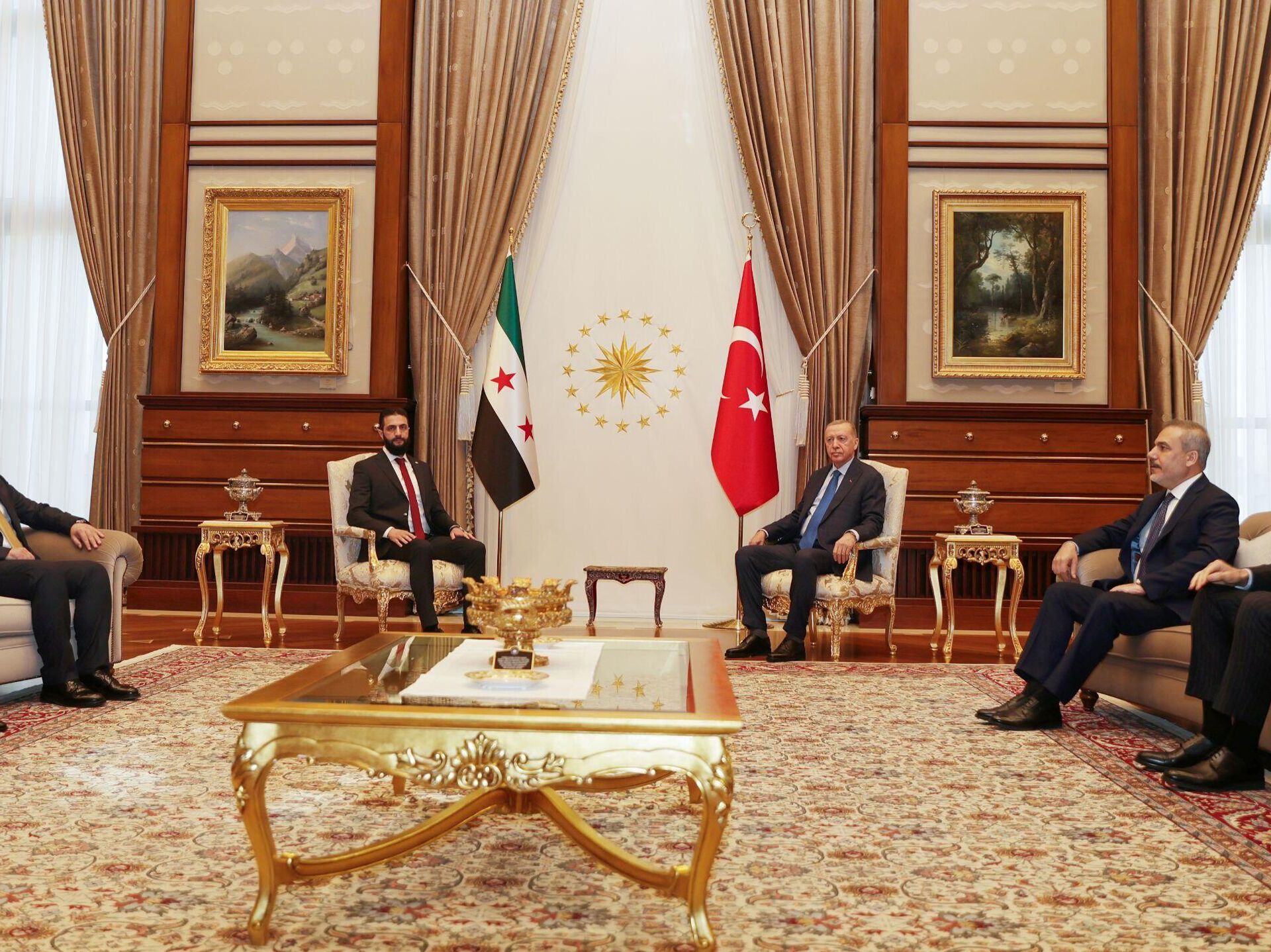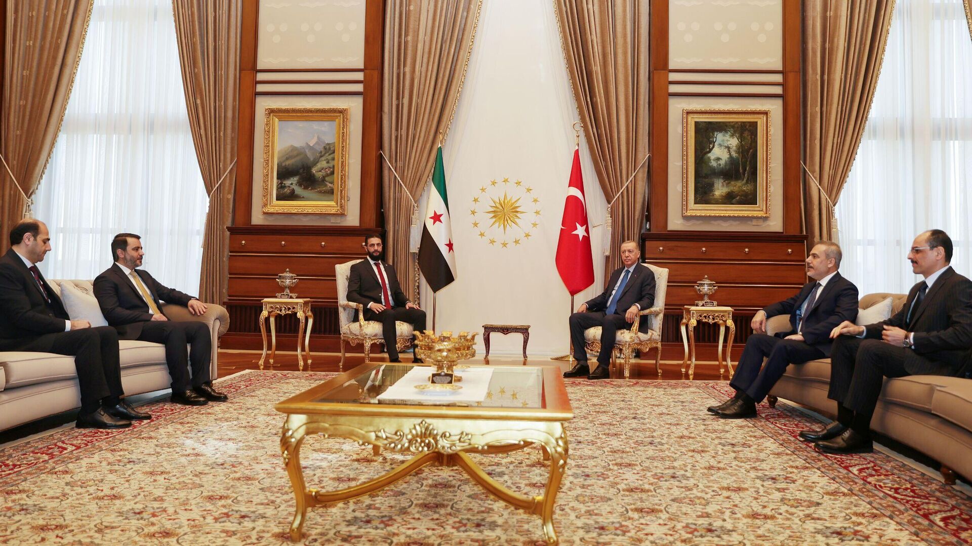 وذكرت وسائل إعلام تركية أن الرئيسين قد بدأ اجتماعهما في أنقرة، وأنه يجري اللقاء بشكل مغلق في المجمع الرئاسي بأنقرة.وقال رئيس دائرة الاتصال في الرئاسة التركية فخر الدين ألتون، يوم أمس الإثنين، في منشور عبر منصة "إكس"، إنّ الرئيس أحمد الشرع يُتوقع أن يصل إلى أنقرة اليوم تلبية لدعوة من الرئيس أردوغان.وأوضح أنّ المحادثات التي ستُجرى في المجمع الرئاسي التركي ستتطرق إلى آخر التطورات في سورية من جميع الجوانب، وتقييم الخطوات المشتركة التي يجب أن يتخذها البلدان في سبيل التعافي الاقتصادي، والاستقرار، والأمن المستدام على الأراضي السورية.وتأتي زيارة الشرع إلى تركيا بعد زيارته الرسمية الخارجية الأولى إلى السعودية، ووصل إلى تركيا برفقة وزير خارجيته أسعد الشيباني في أول زيارة سيلتقي خلالها الرئيس رجب طيب أردوغان.لافروف: الحوار في سوريا "لا يسير بشكل جيد" وهناك مشاكل لدى السلطاتالرئيس الإيراني: موقفنا من سوريا هو تشكيل حكومة شاملة تمثل أبناء الشعب كافة