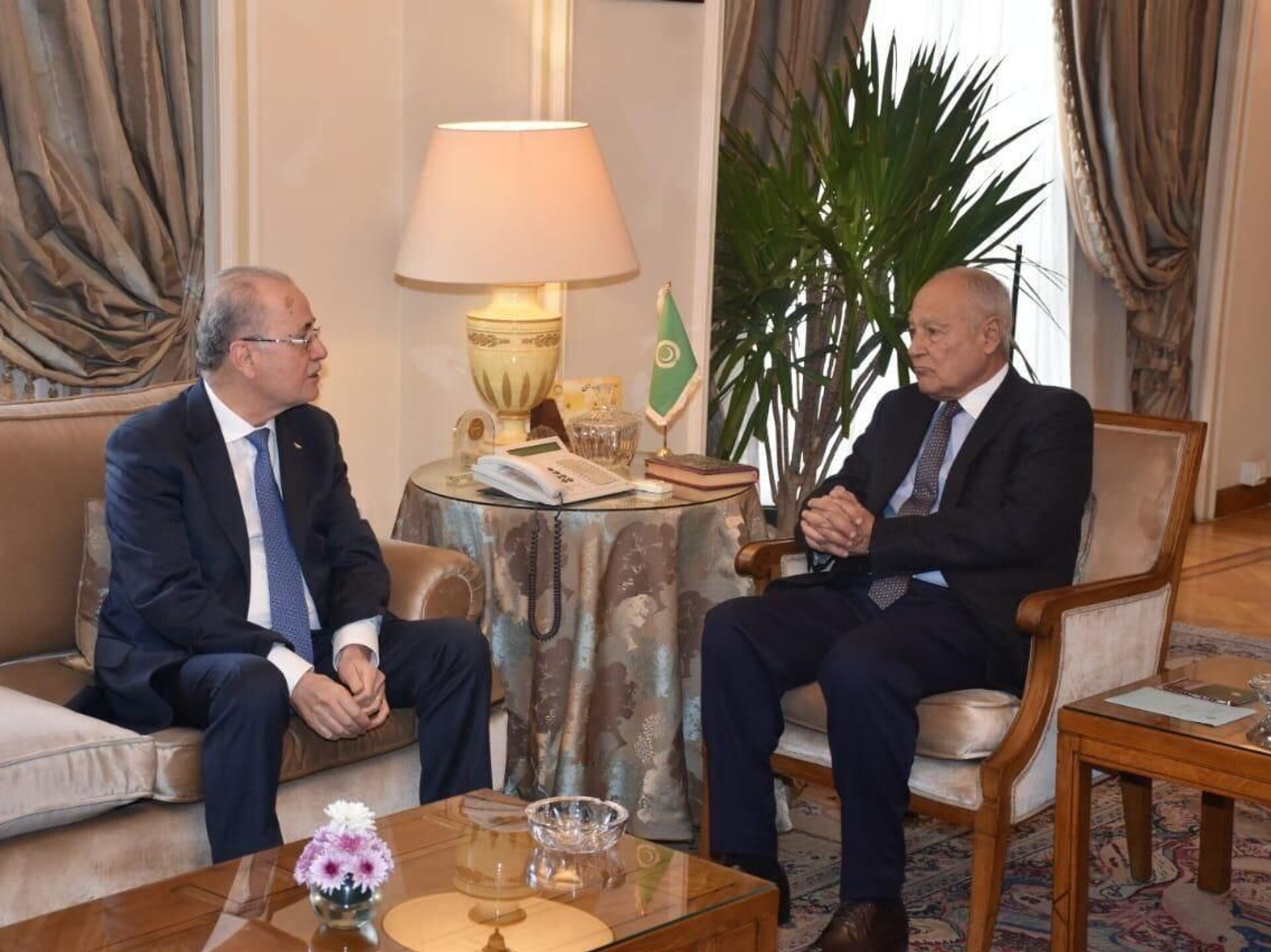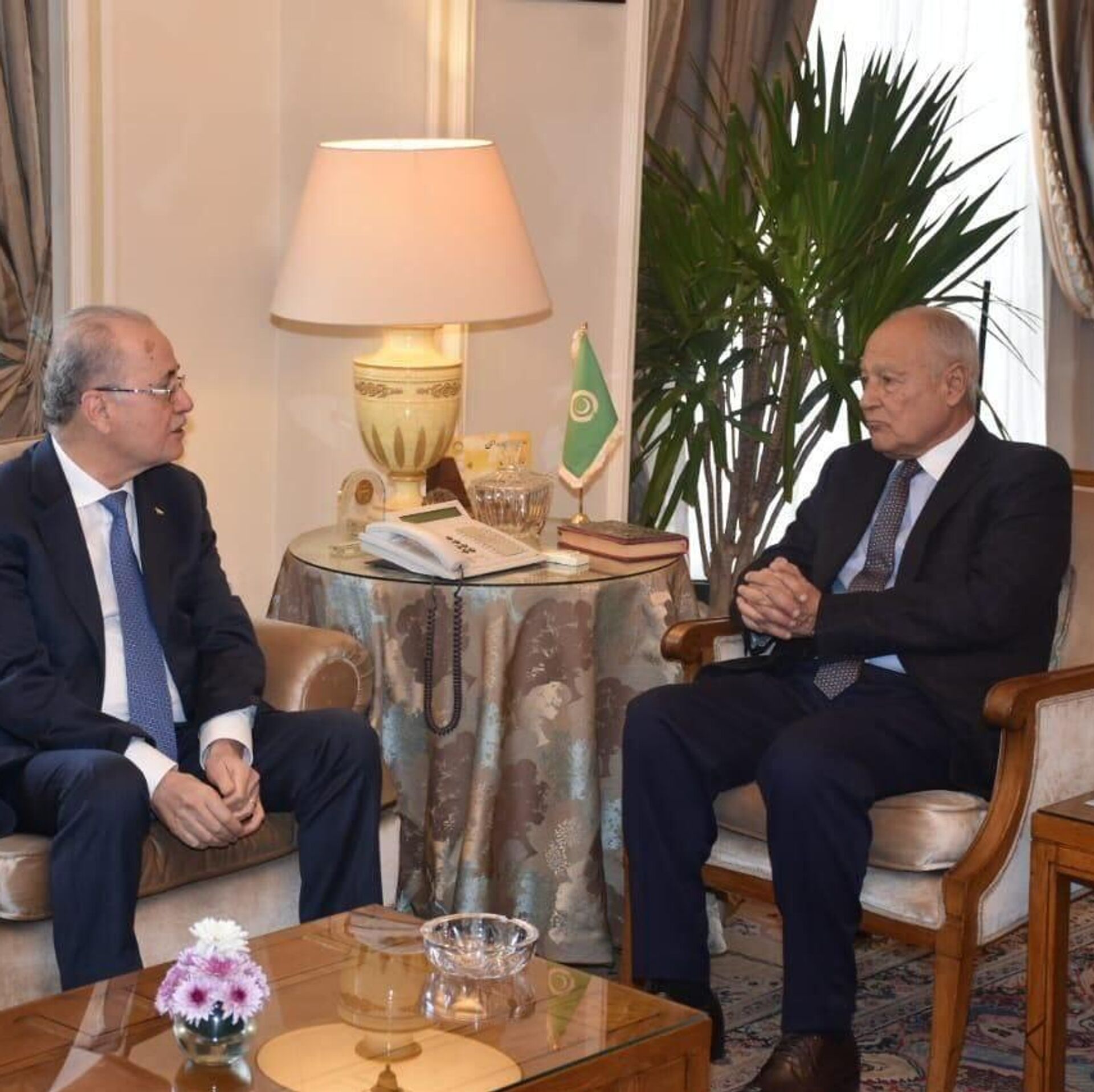 أجرى رئيس الوزراء الفلسطيني ووزير الخارجية والمغتربين محمد مصطفى، مباحثات مع الأمين العام لجامعة الدول العربية أحمد أبو الغيط، بمقر الجامعة في العاصمة المصرية القاهرة.