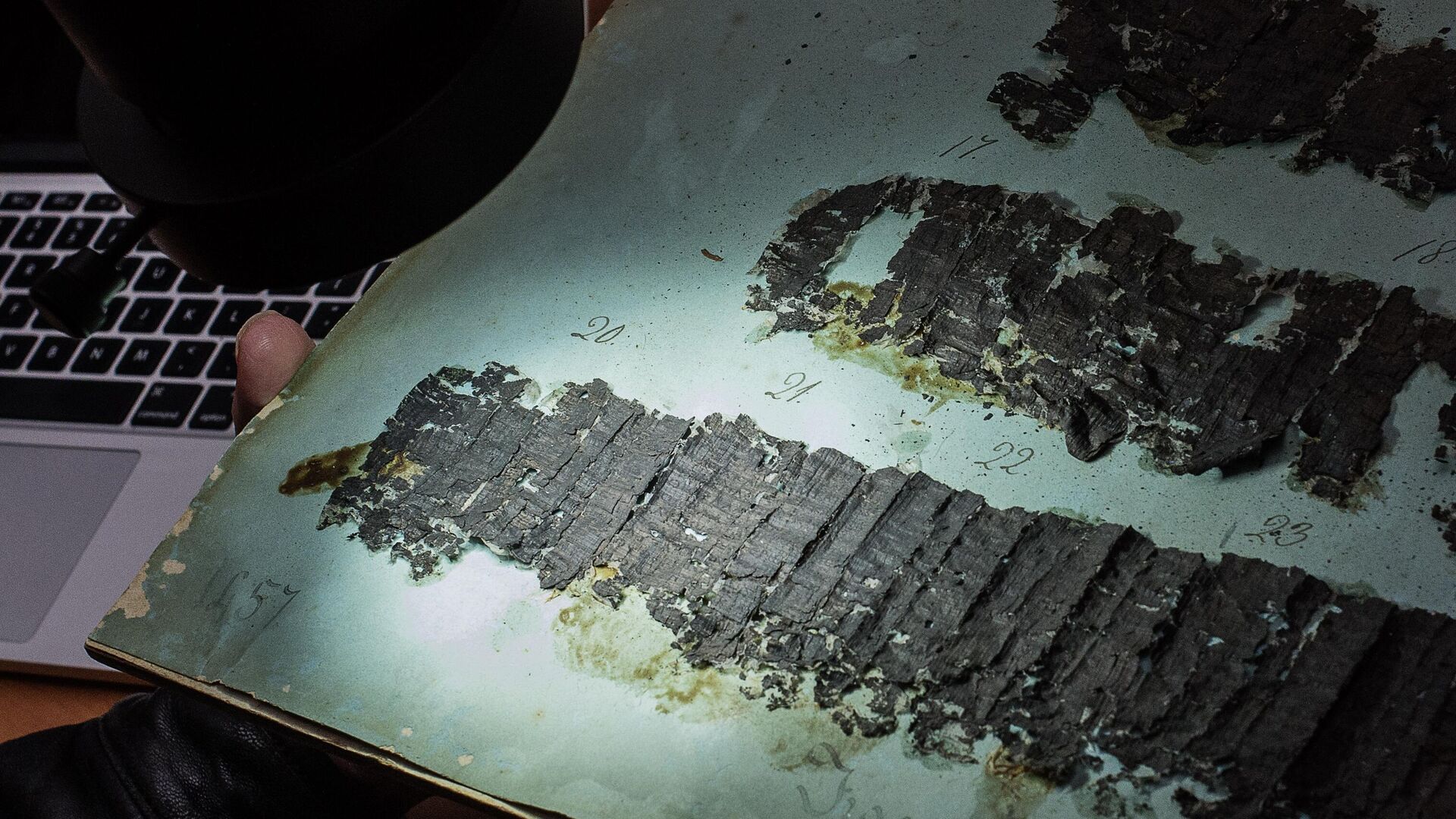 ويقول فريق مشارك في تحدي "فيزوف"، وهي مسابقة تقدم جوائز مالية لأي شخص يستطيع المساعدة في فك رموز المخطوطات الحساسة، إنه تمكن من فك غلاف ورق البردى تقريبا ليكشف عن أعمدة من النصوص، التي بدأ علماء أكسفورد بالفعل العمل على فك شيفرتها.