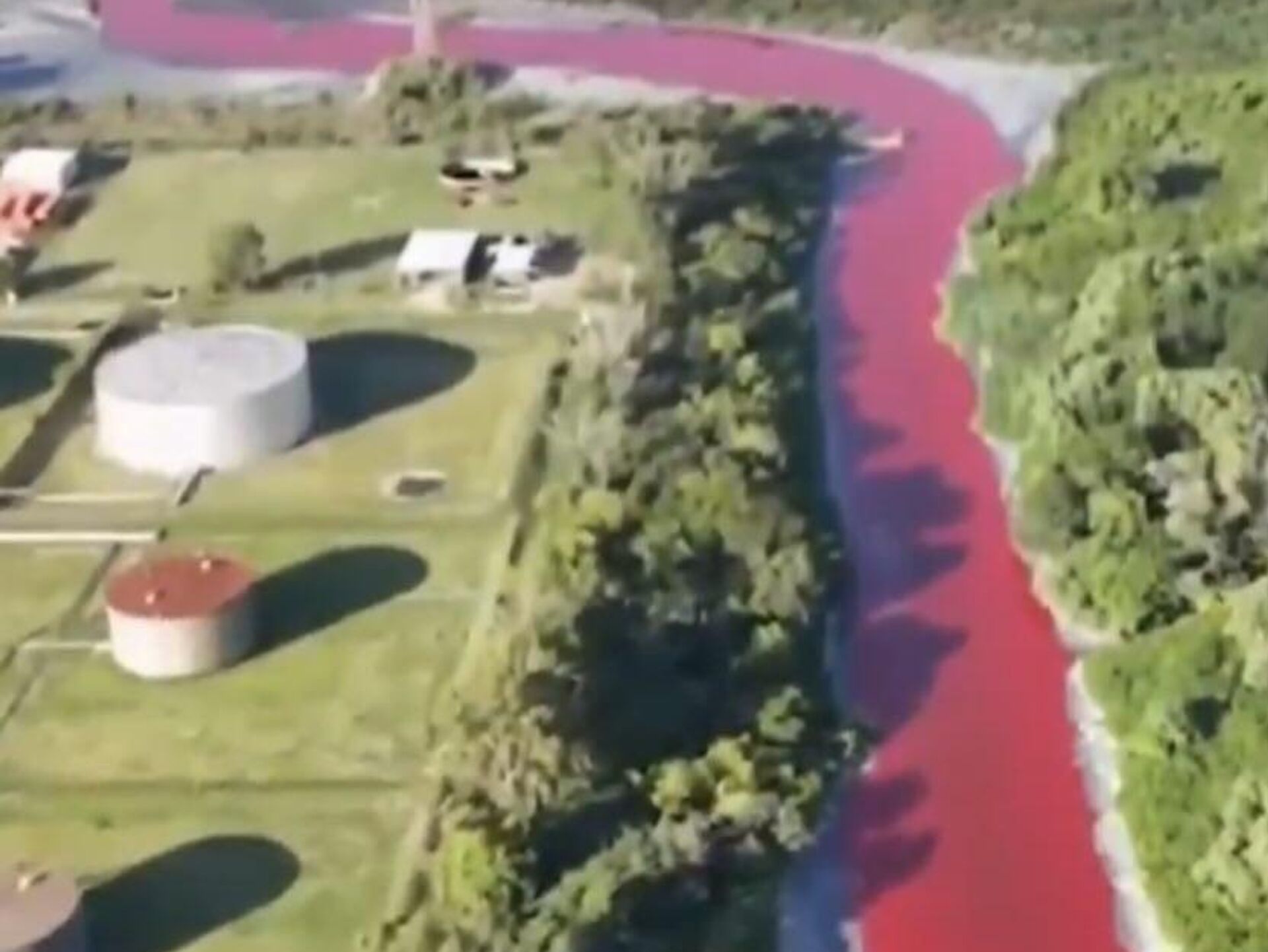 وتبين المشاهد لونا غريبا للمجرى المائي وأصبحت المياه تشبه الدماء التي تسيل، وذلك عبر لقطات جوية من طائرة مسيرة في الأرجنتين.